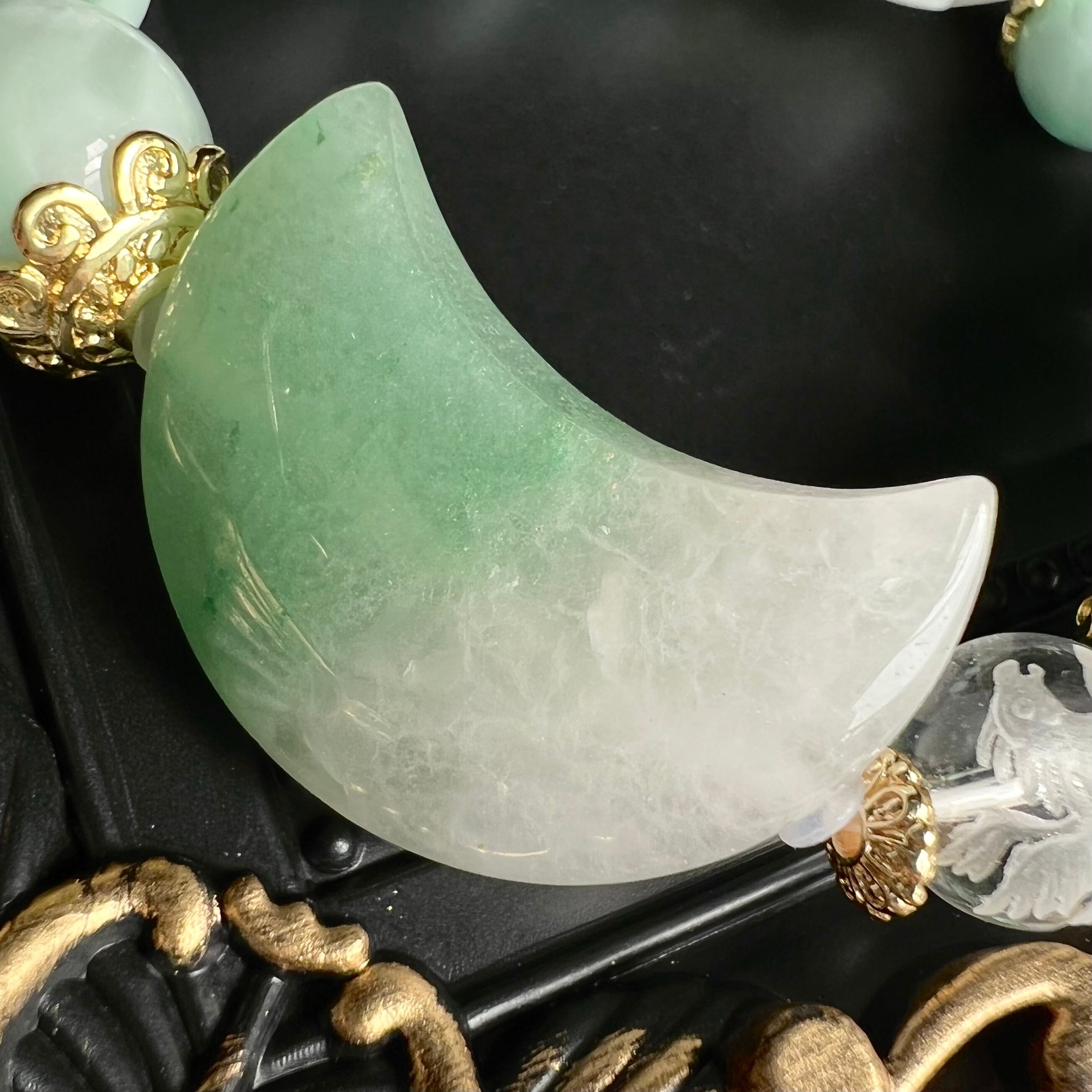 翡翠 三日月 星 水晶 ペガサス 彫刻 セラフィナイト 天然石 ブレスレット