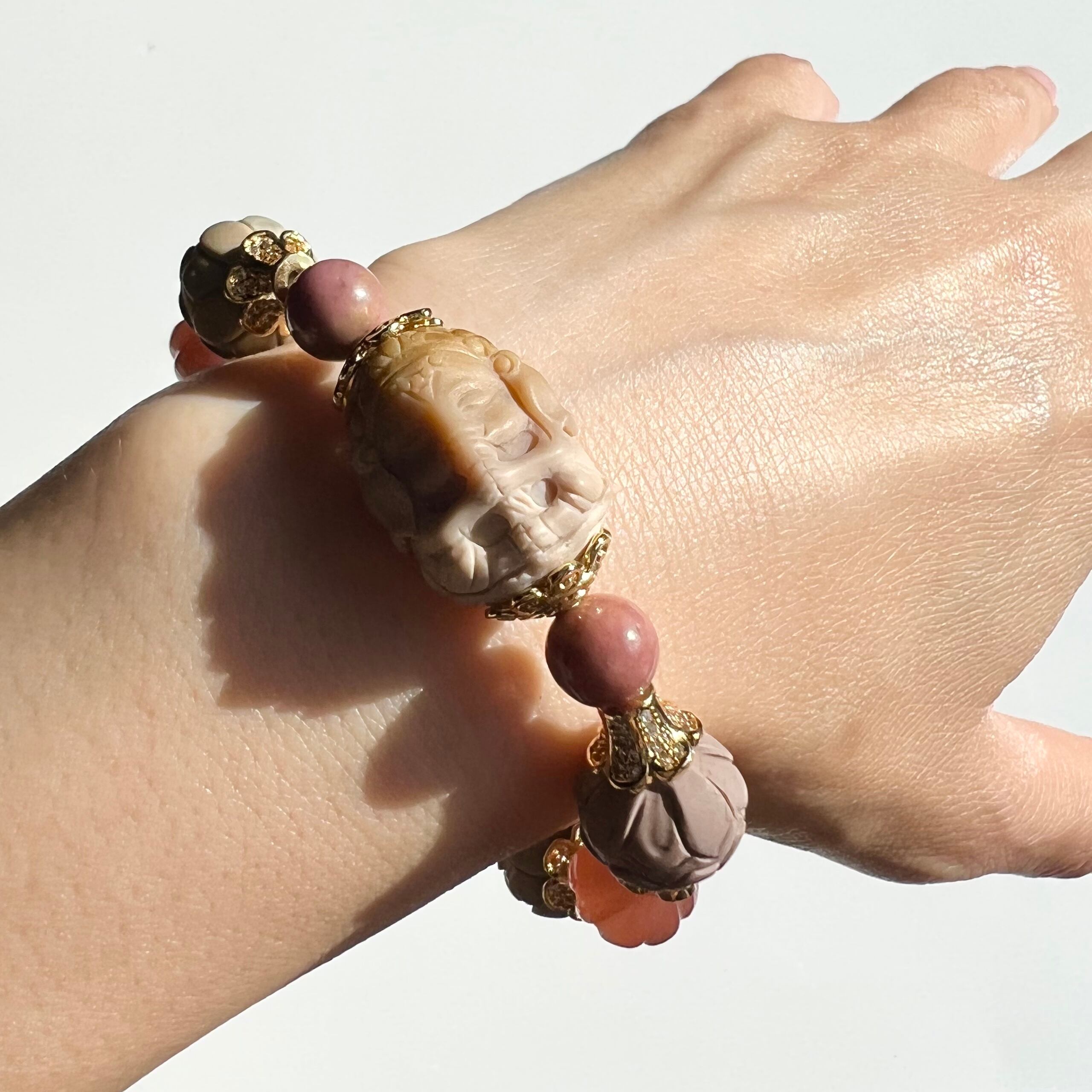 アラシャン瑪瑙 ガネーシャ 蓮花 蓮の花 彫刻 天然石 ブレスレット
