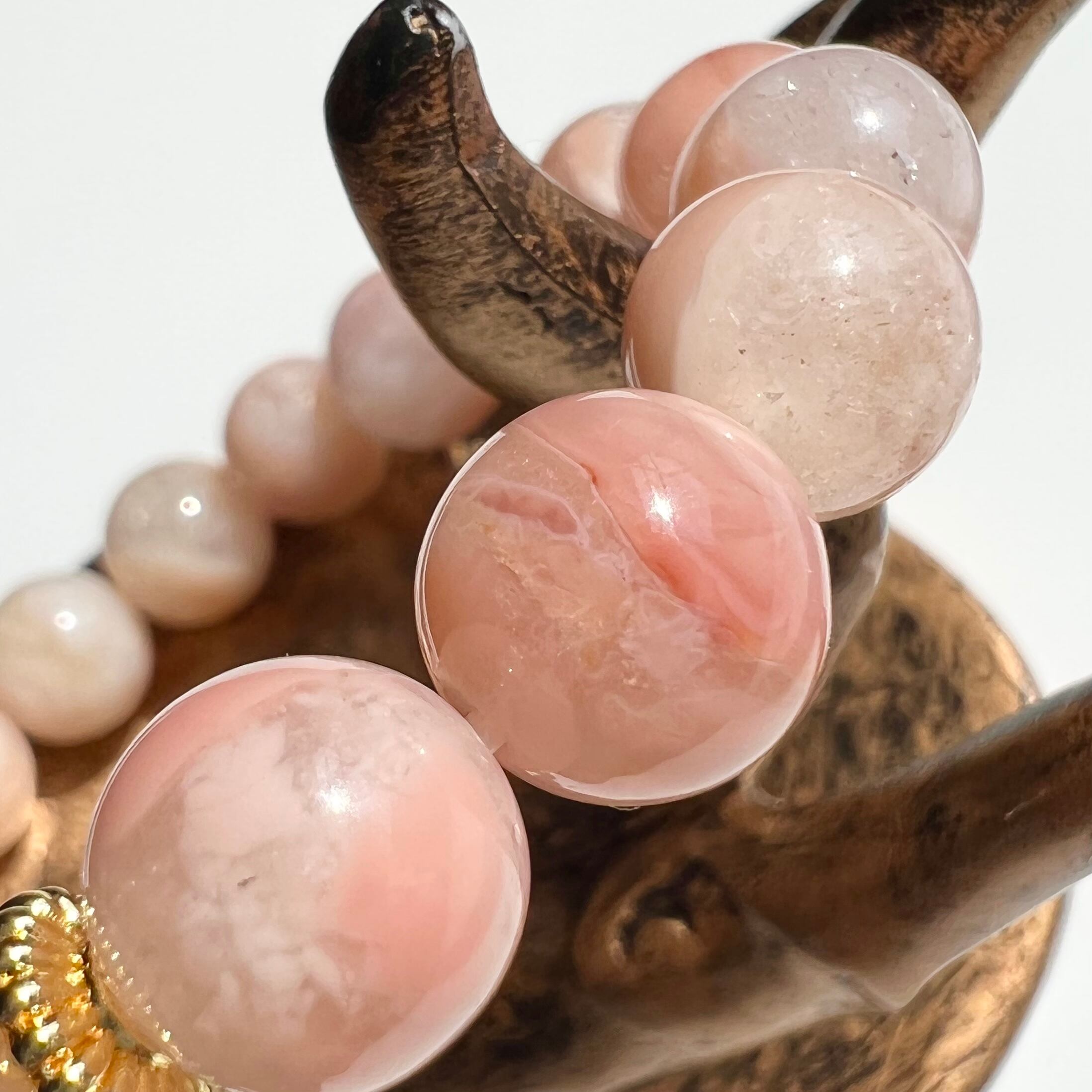 とても大きな20mm玉満天天珠と、ほんのりベージュピンクが可愛いアラシャン瑪瑙のブレスレットです