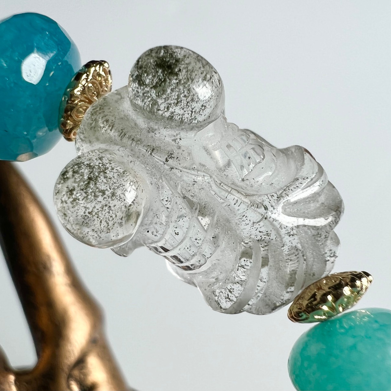 ブレス部分も天然水晶とアクアマリンの丸玉でとても爽やかな組み合わせとなっております