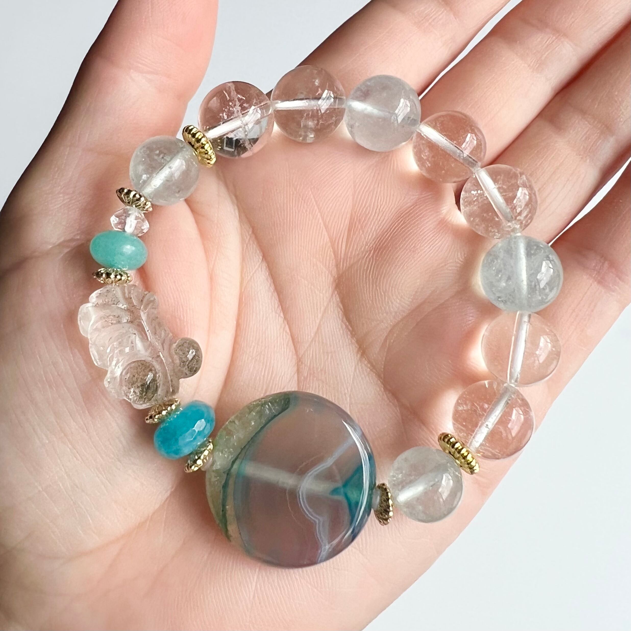 瑪瑙 アゲート 金魚 水晶 アクアマリン 天然石 ブレスレット