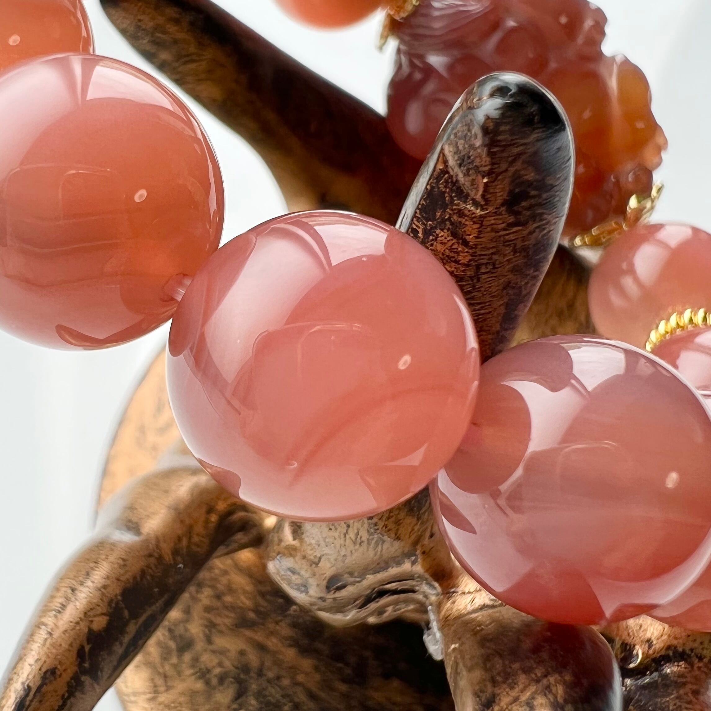 同じ塩源瑪瑙の塊から作られたのではないかと思うくらい、色がよく似た貔貅と丸玉がそれぞれ運良く手に入りました