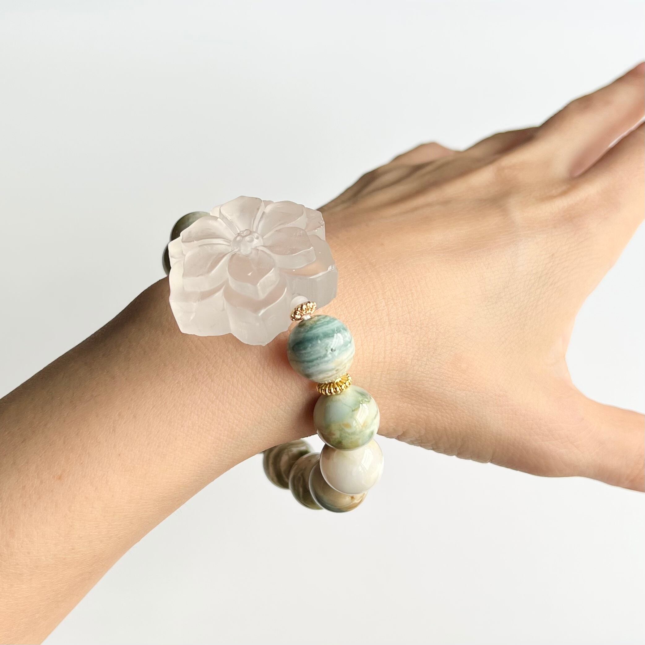 水晶 花 彫刻 アラシャン瑪瑙 天然石 ブレスレット