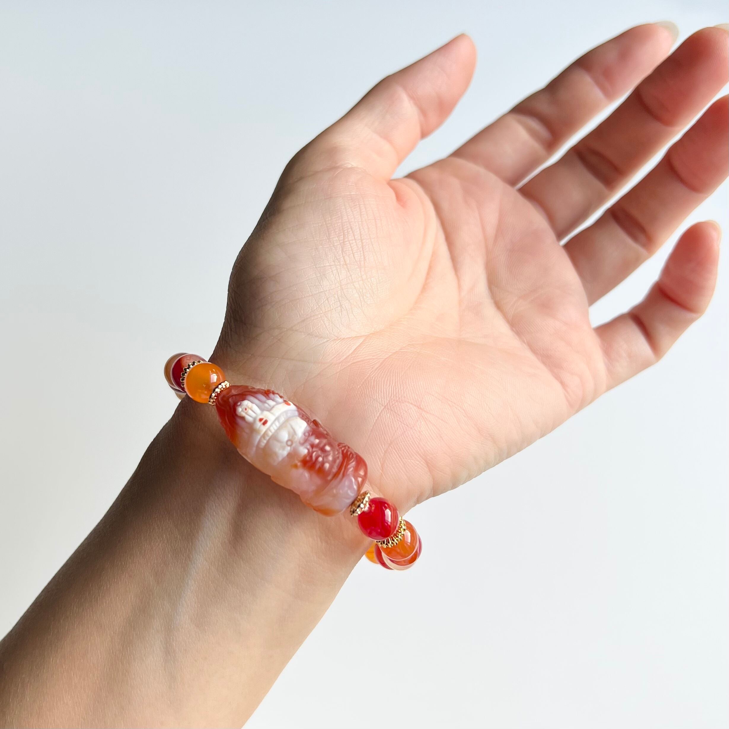 財神天珠 彫刻 瑪瑙 アゲート 天然石 ブレスレット