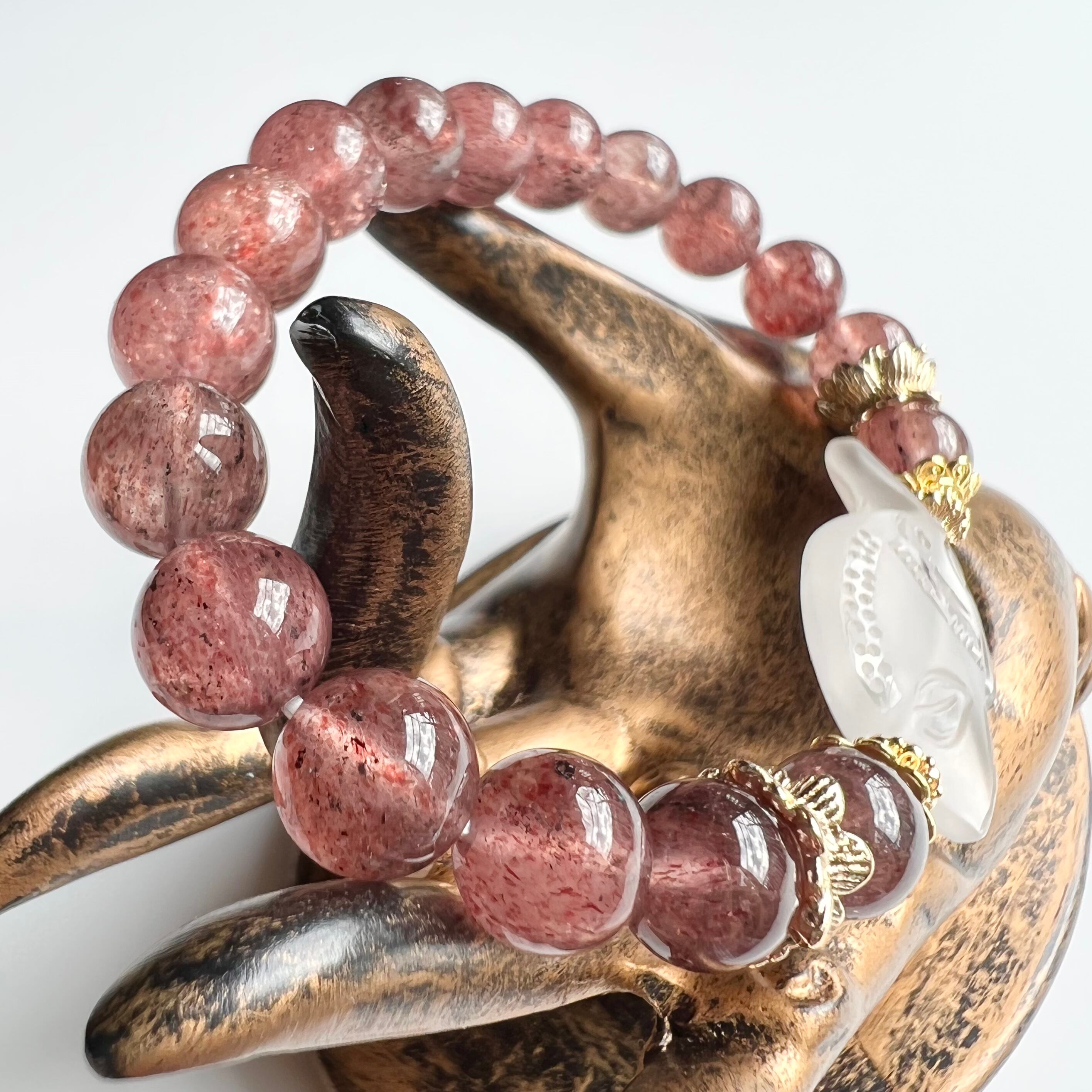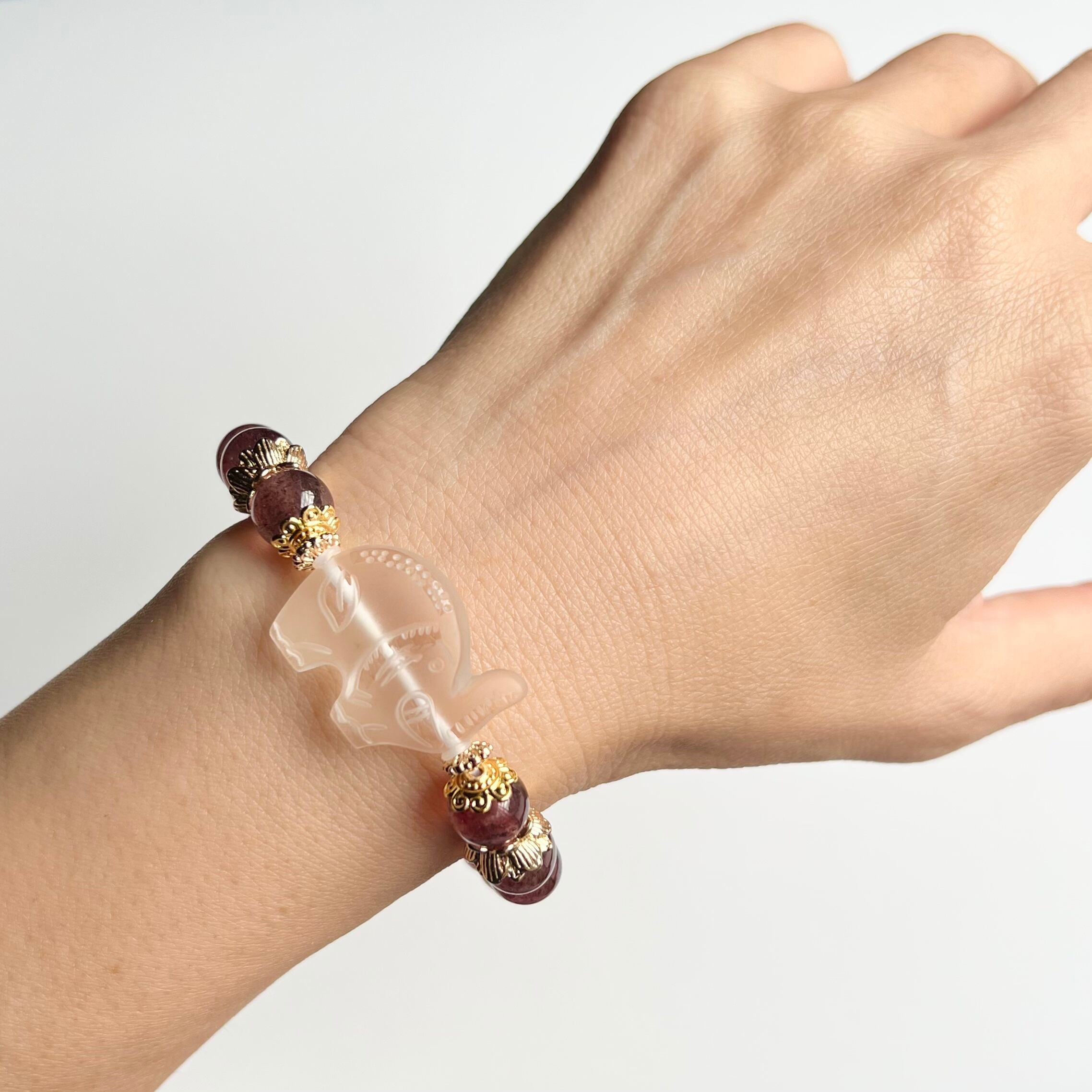 水晶 象 彫刻 ストロベリークォーツ 天然石 ブレスレット