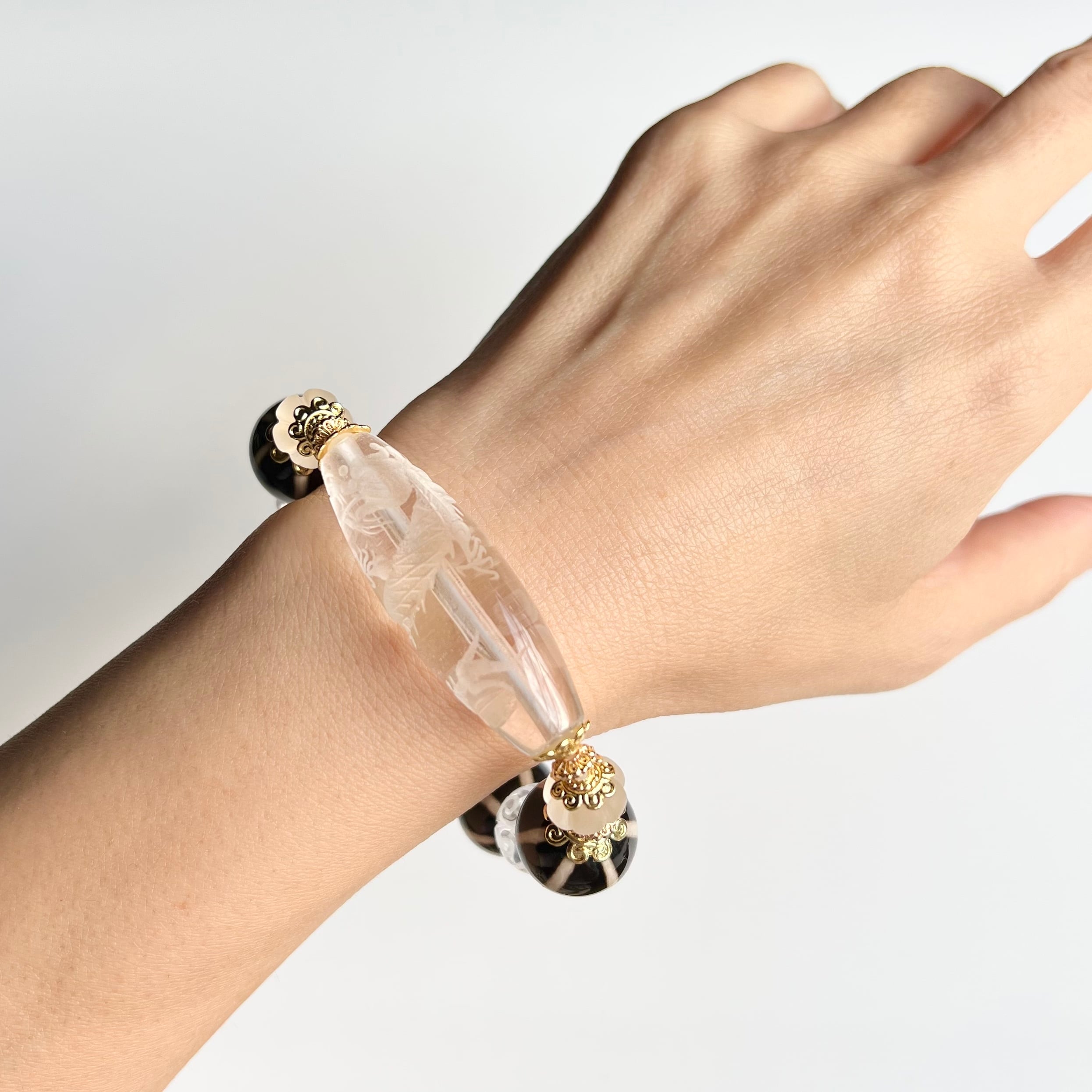 水晶 龍 彫刻 回紋珠 南瓜珠 線珠 天然石 ブレスレット