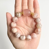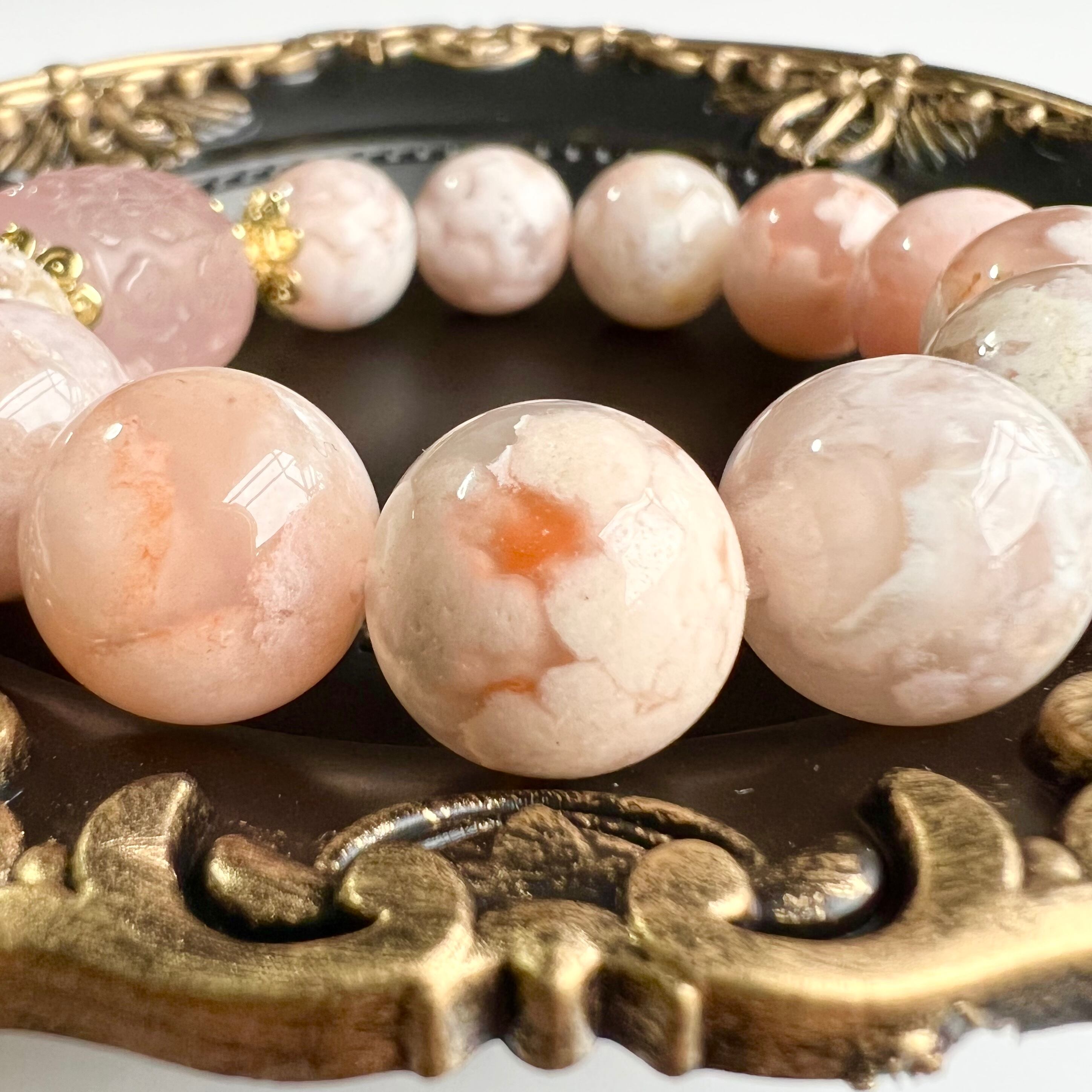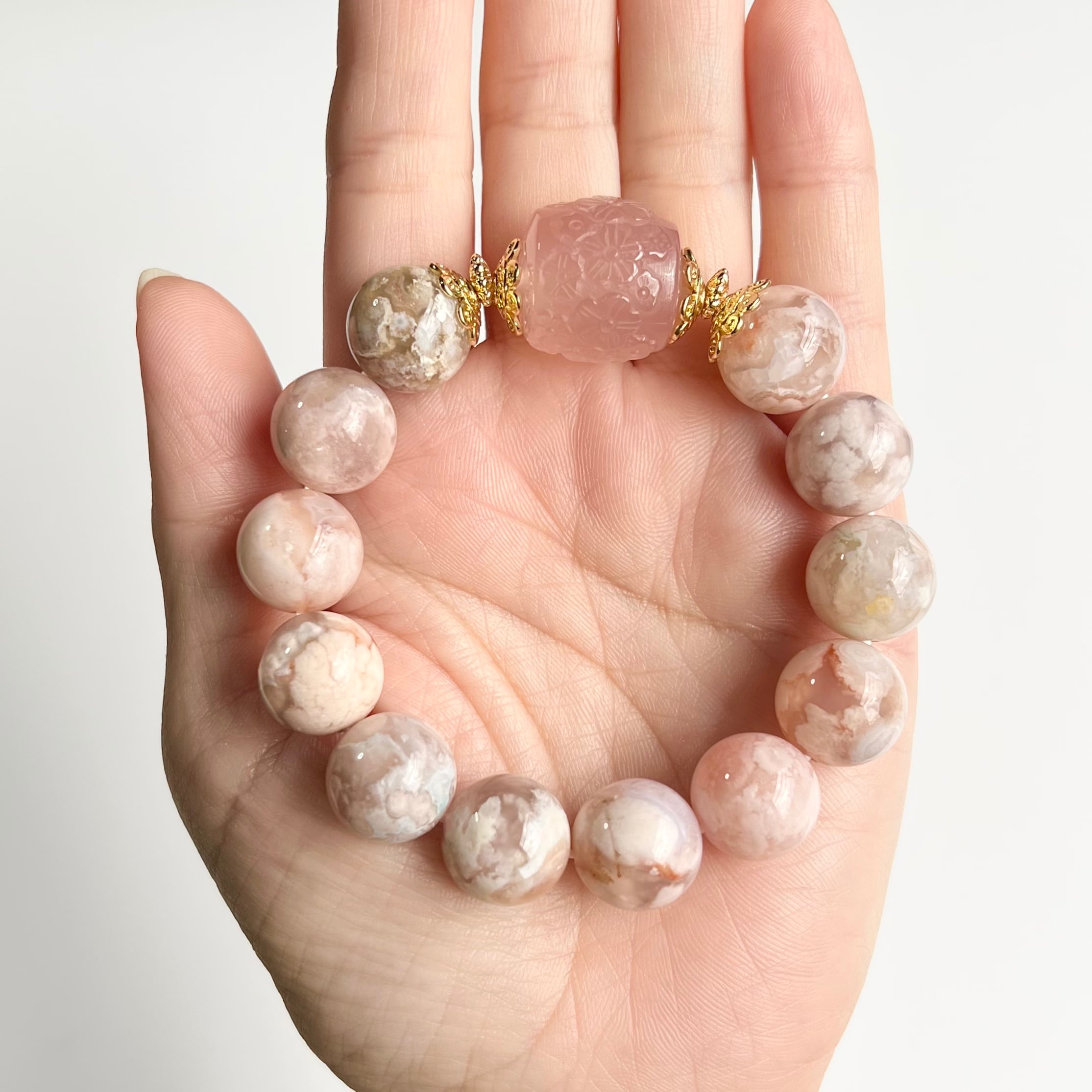 ローズクォーツ 桜 彫刻 桜瑪瑙 チェリーブロッサムアゲート 天然石 ブレスレット