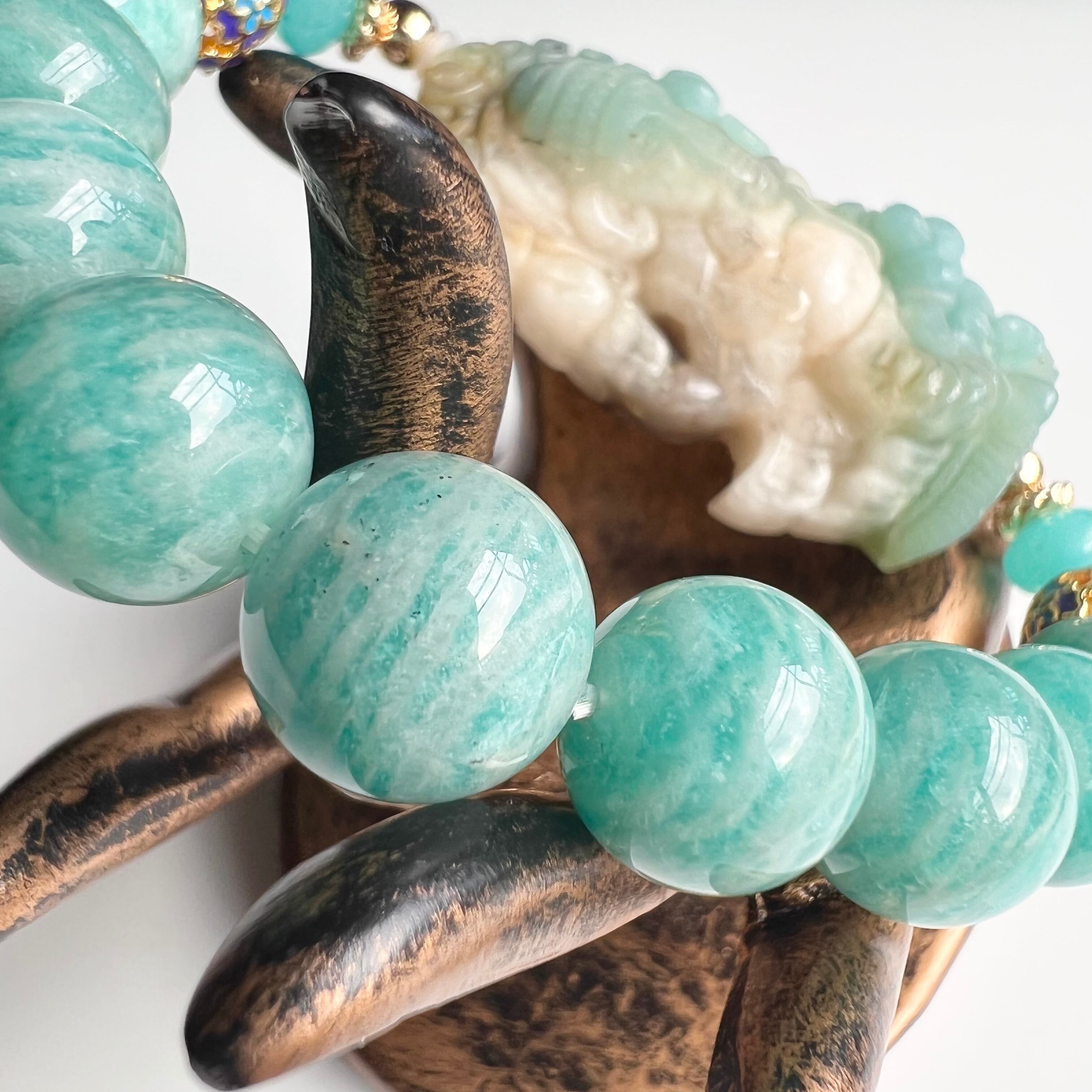 アマゾナイト ガネーシャ 彫刻 天然石 ブレスレット