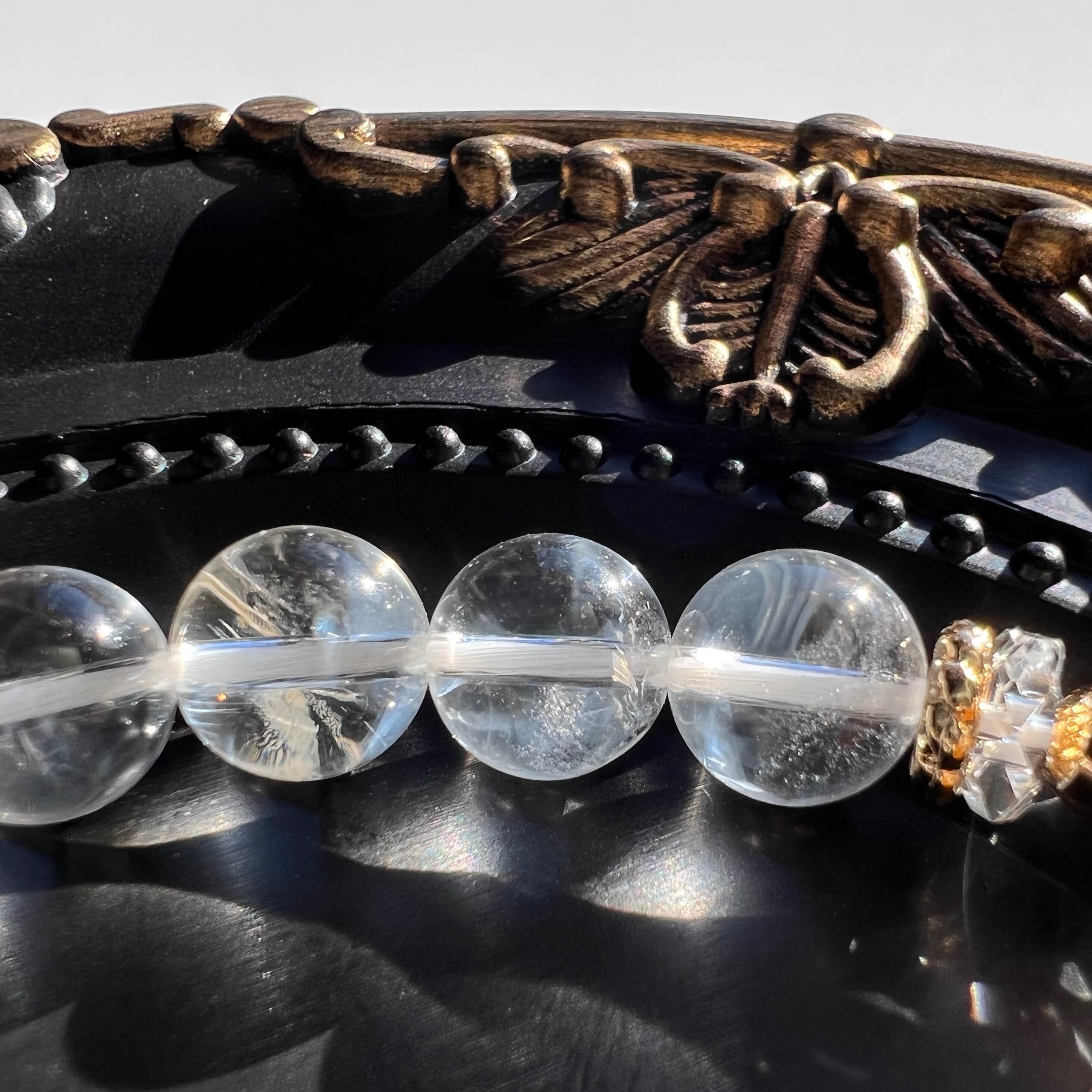 一見水晶のブレスに見えますが、直射日光等の強光線に当てるとエンジェルラダーがふんわり浮かびます(暗色の下地に置くとわかりやすいです)