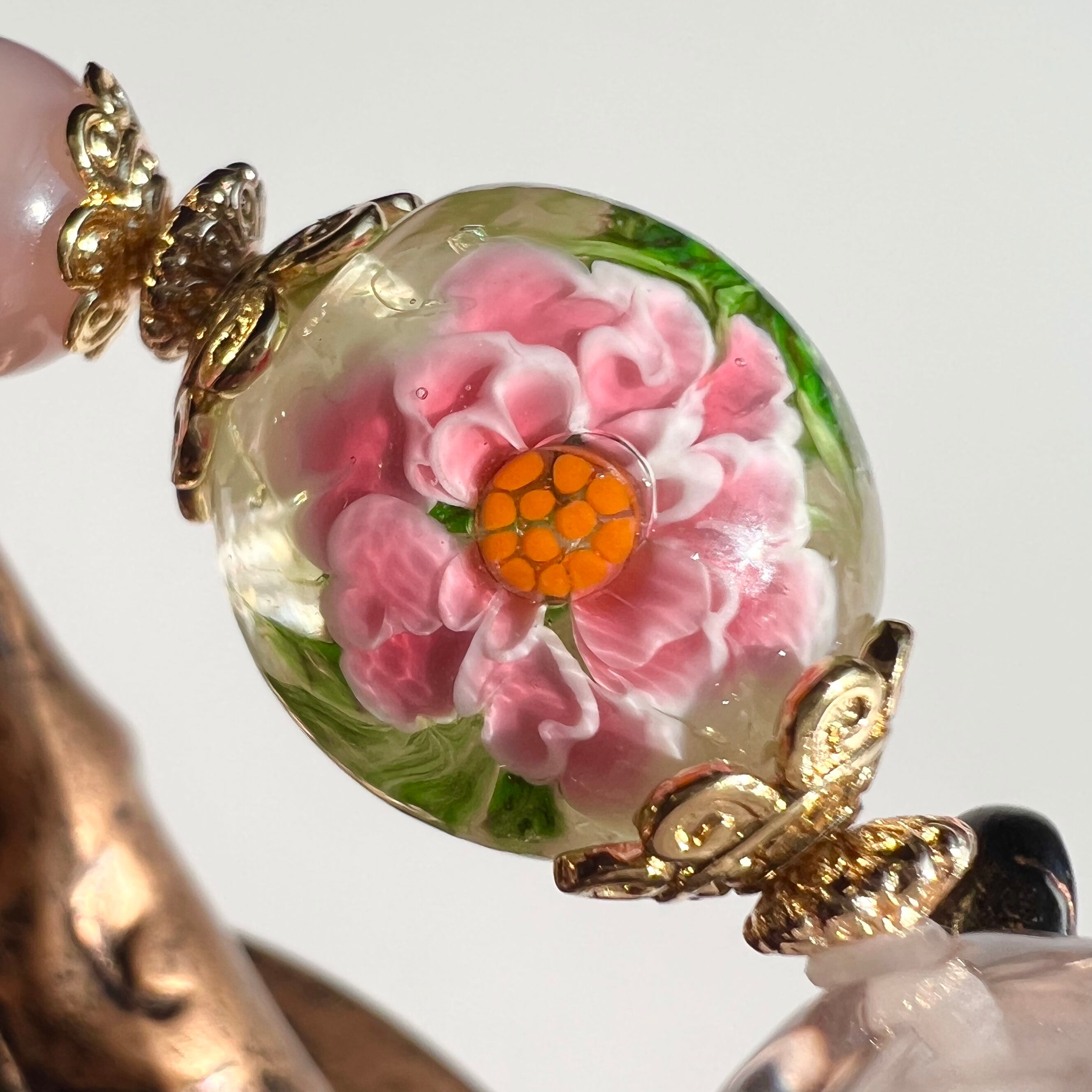 牡丹のとんぼ玉に合うブレス部分の石を探し、こちらの塩源瑪瑙が見つかった時はとても嬉しかったです