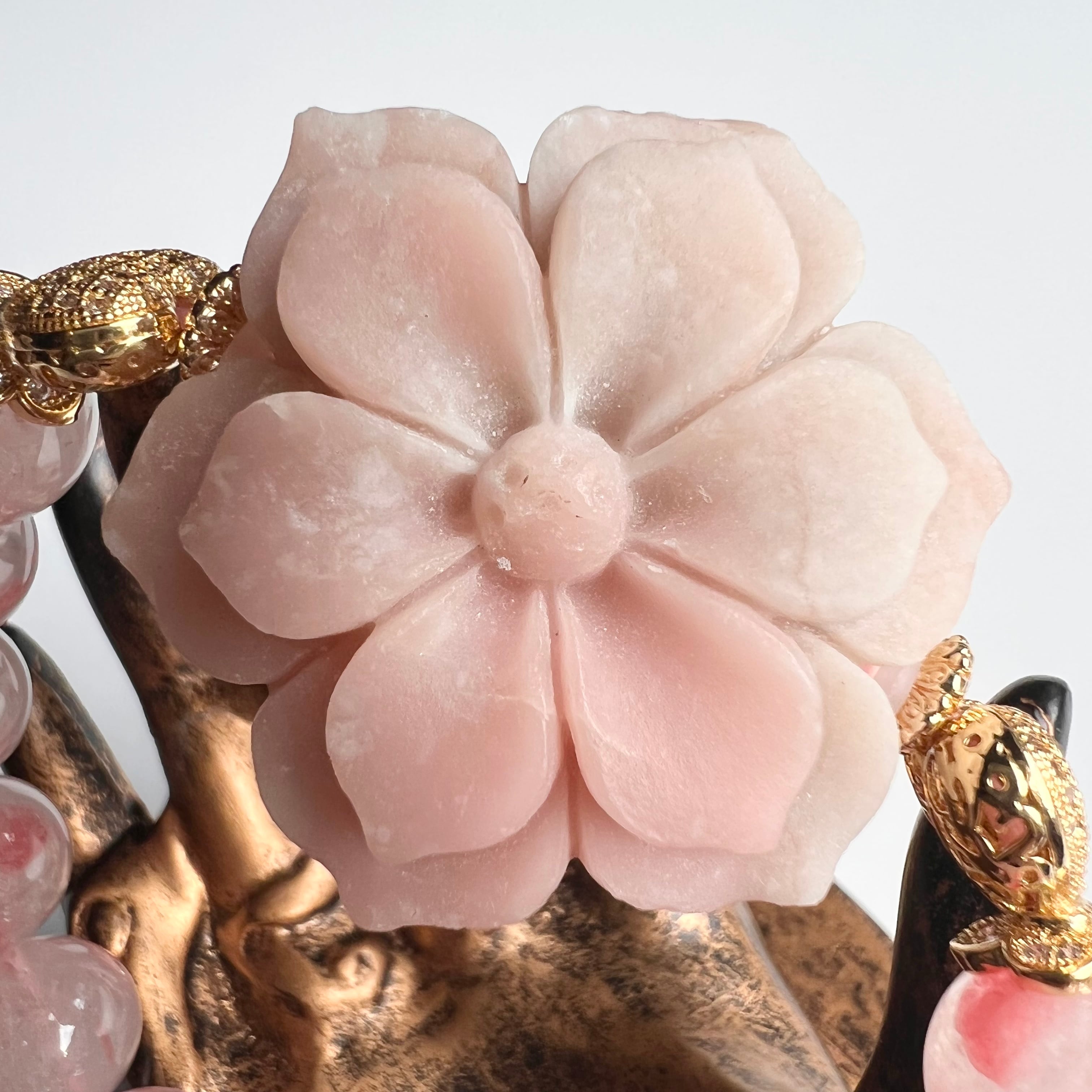 ピンクオパール 花 彫刻 ロードナイトシリカ ハート 天然石 ブレスレット