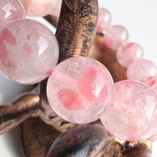 ブレス部分のロードナイトシリカは水晶の中にロードナイトが混ざっており、ピンクの花びらが浮いているような可愛い石です