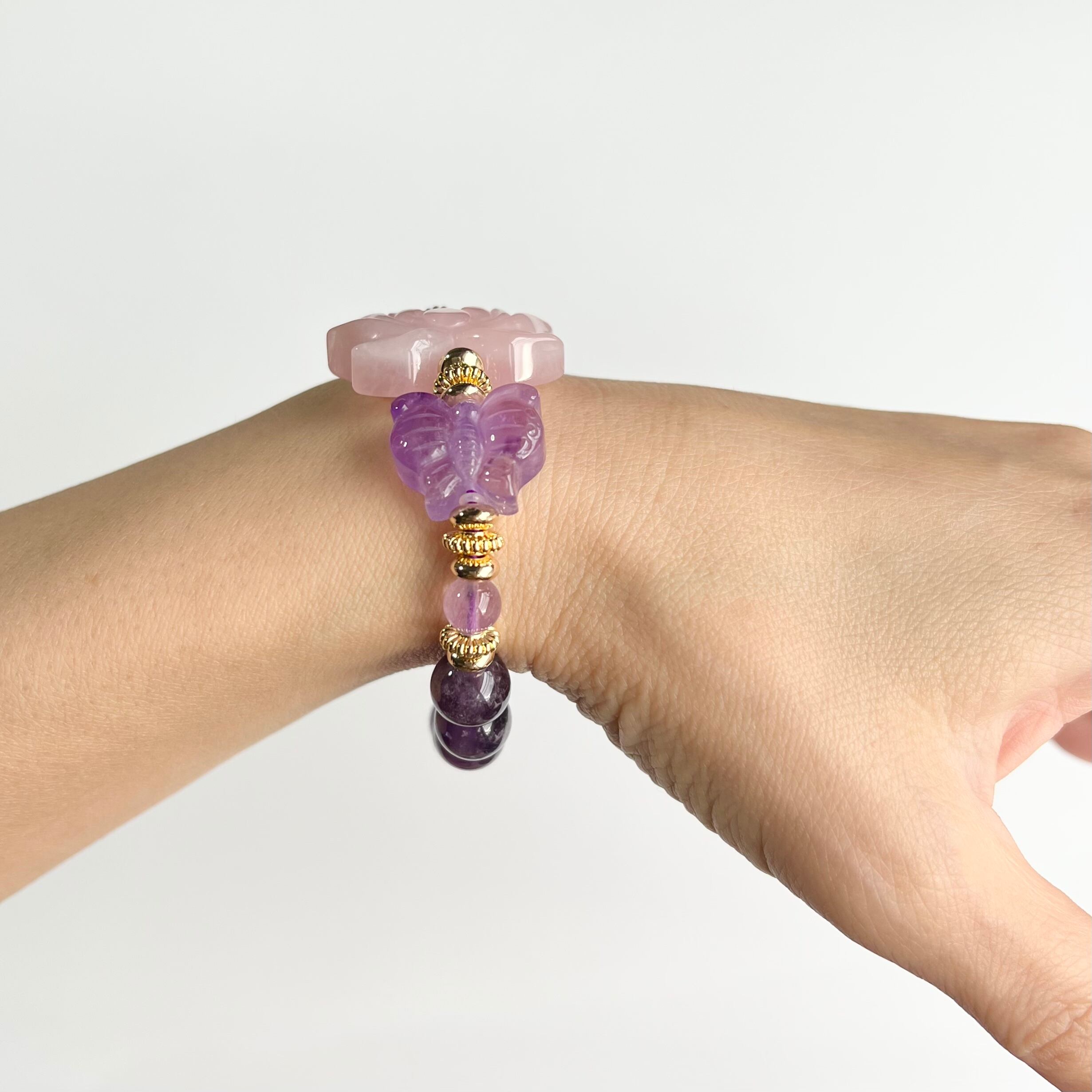 ローズクォーツ 蓮花 アメジスト 蝶々 天然石 ブレスレット