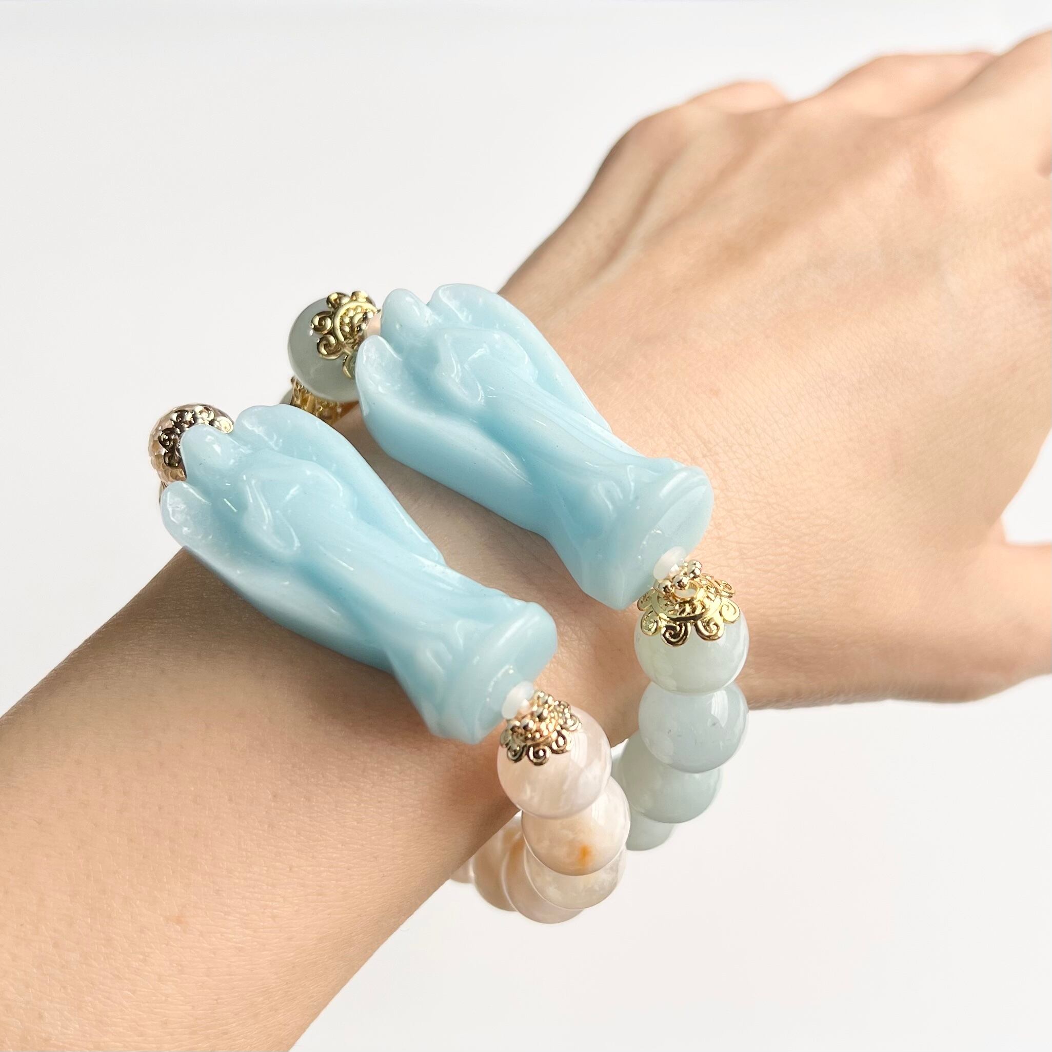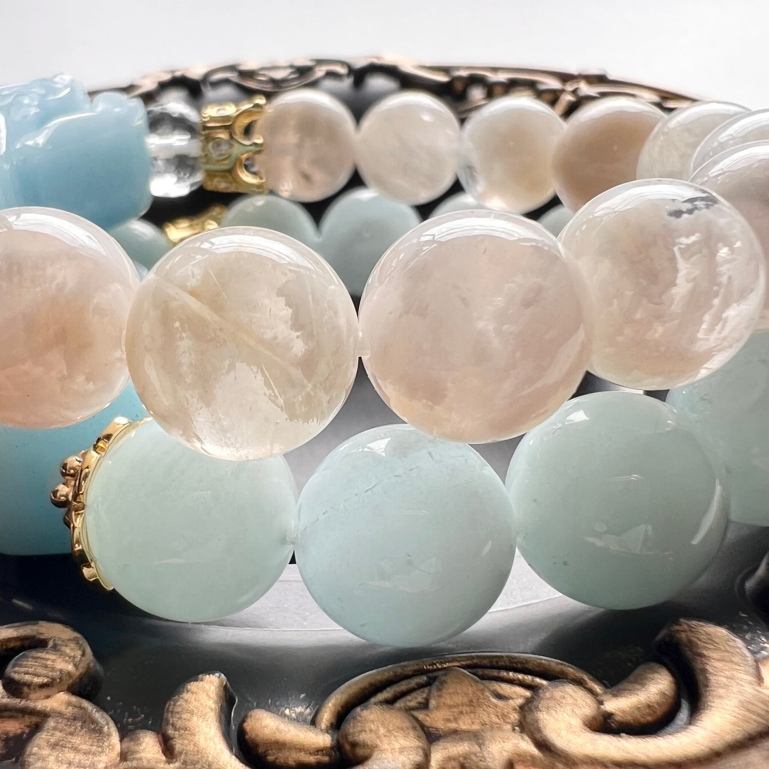 ルミナスストーン 天使 コットンインクルージョンクォーツ アクアマリン 天然石 ブレスレット