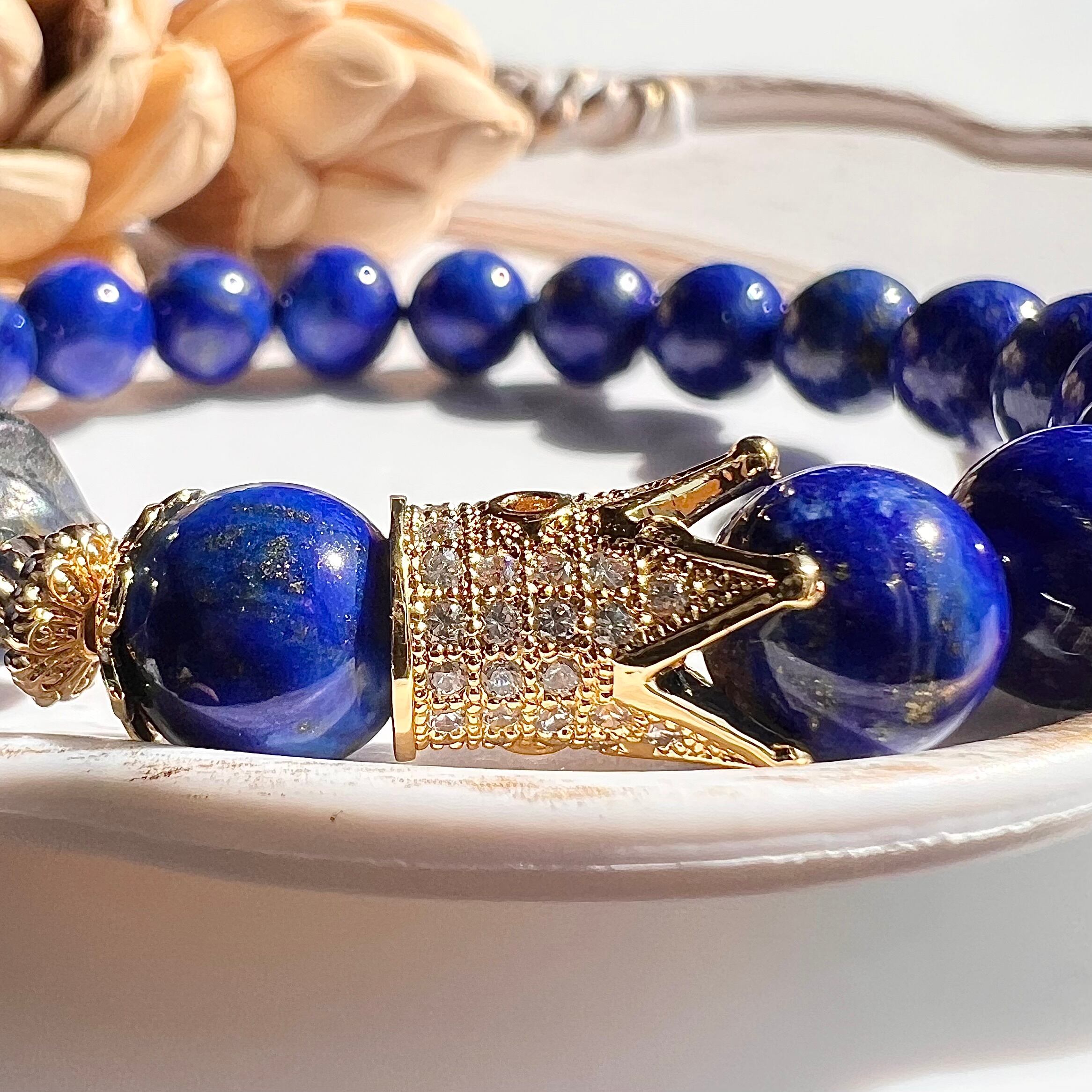 ブレス部分のラピスラズリは金色のパイライトが入った綺麗なラピスブルーです