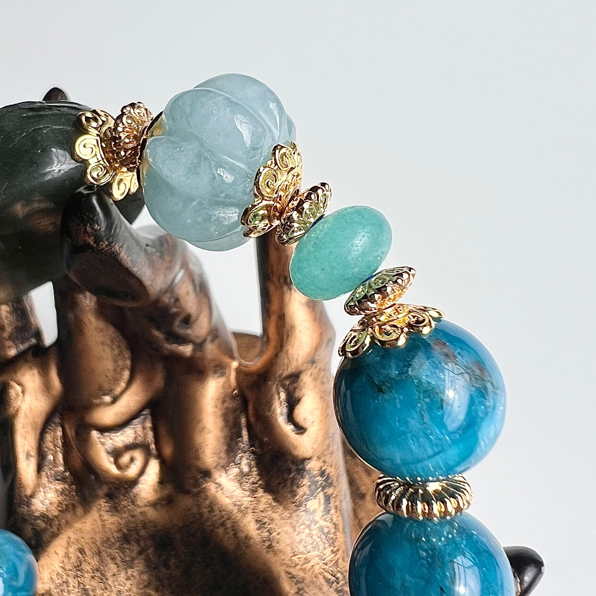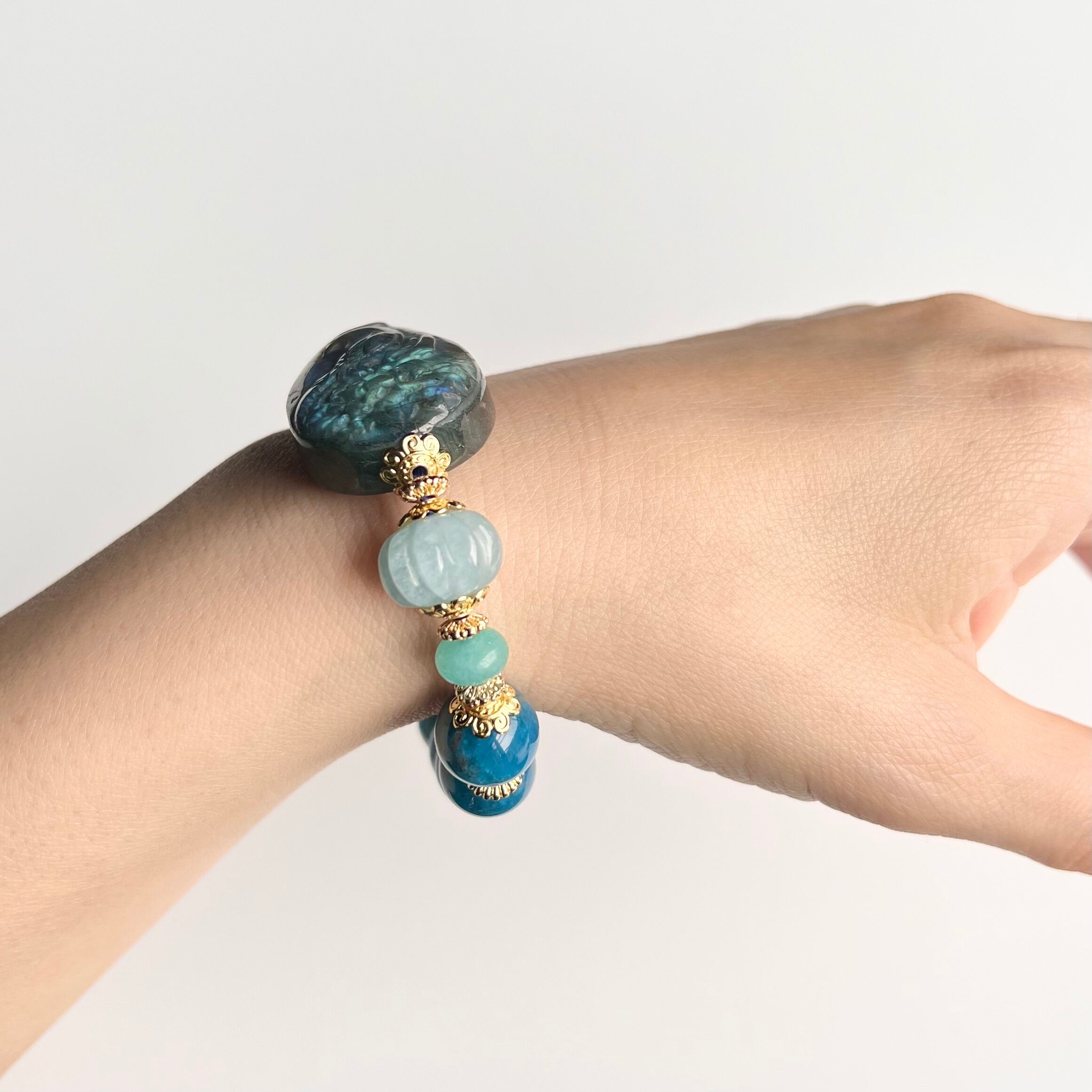 ラブラドライト 牡丹 鳳凰 孔雀 アパタイト 天然石 ブレスレット
