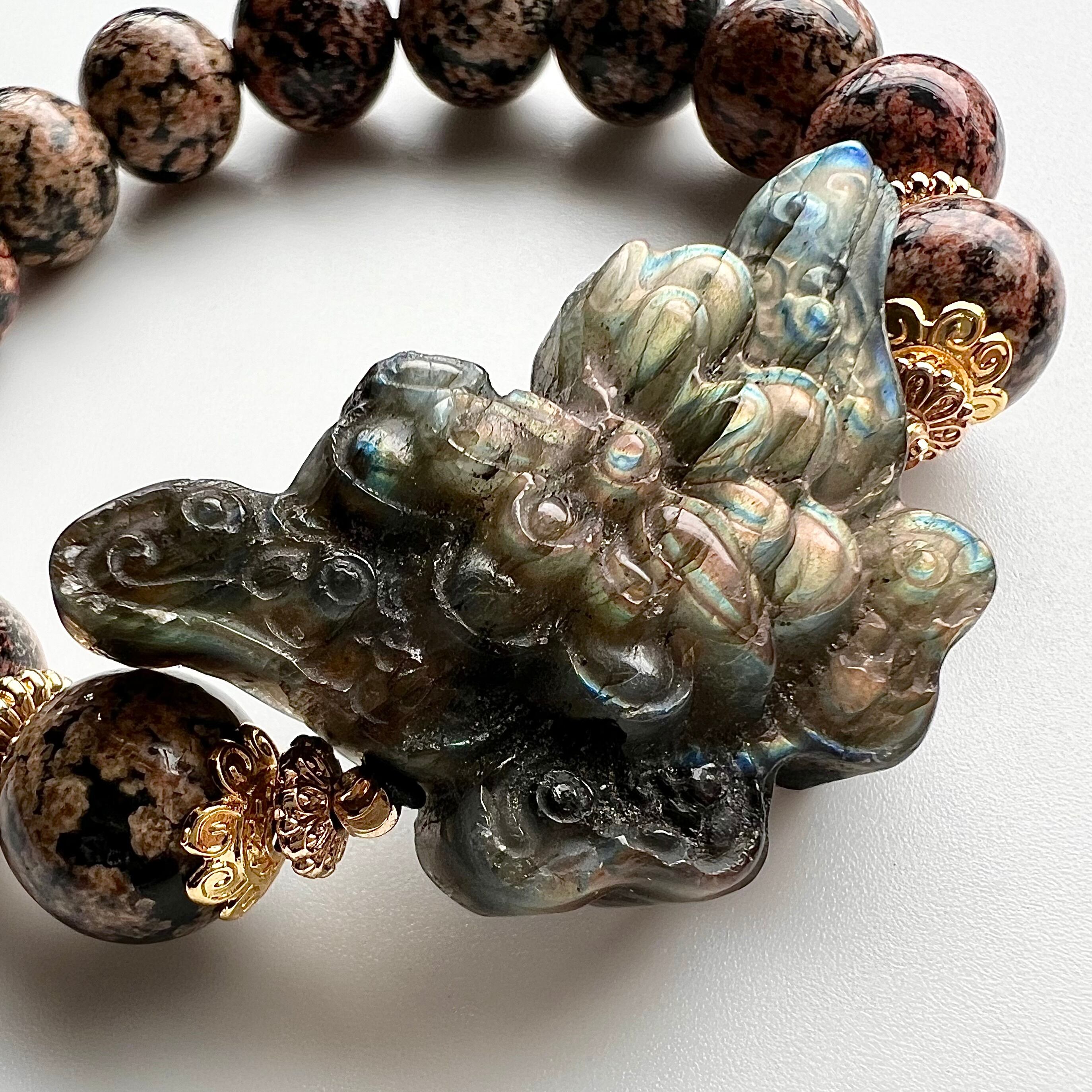 ラブラドライトの蝶とフラワーオブシディアンのブレスです