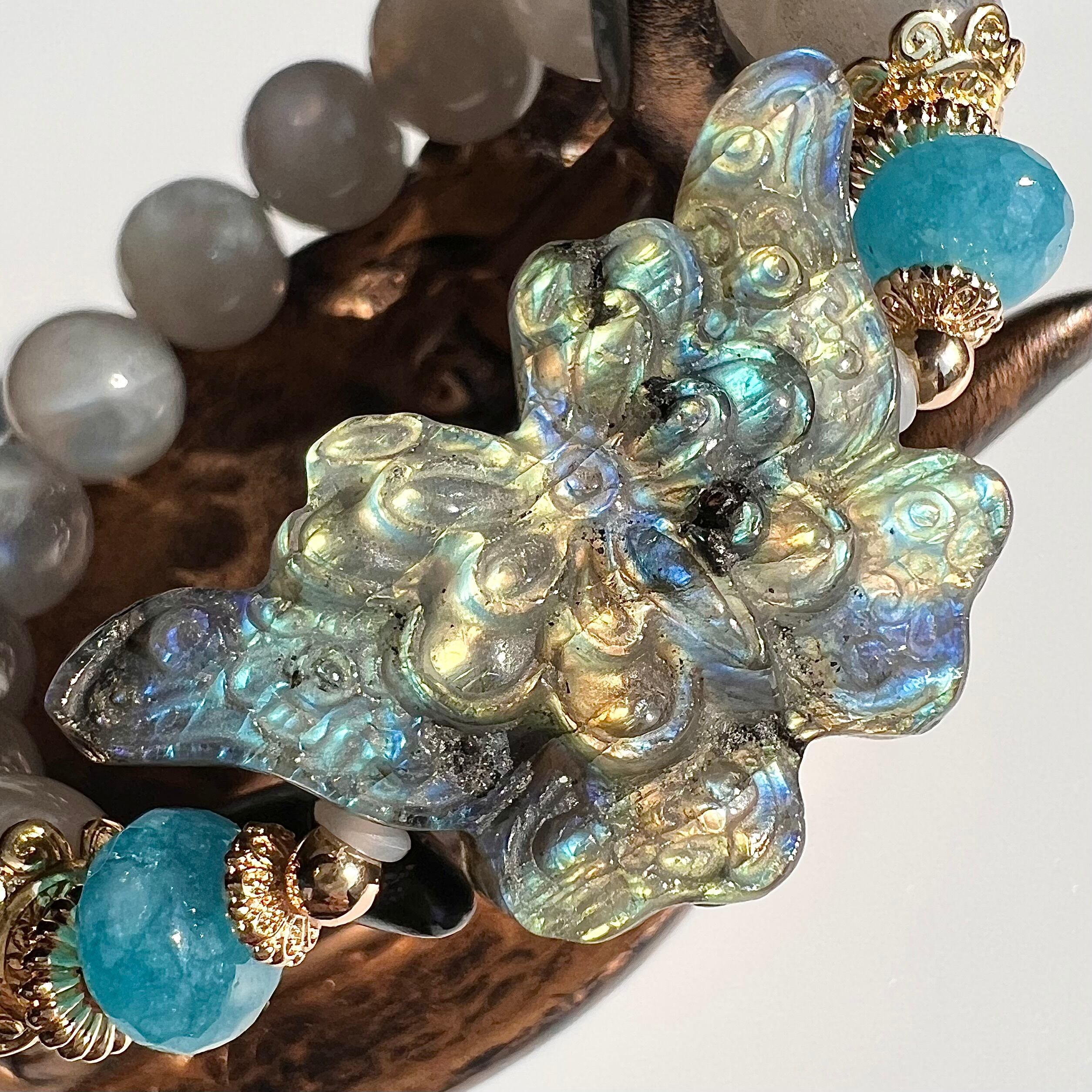 ラブラドライト 蝶 彫刻 天然石 ブレスレット