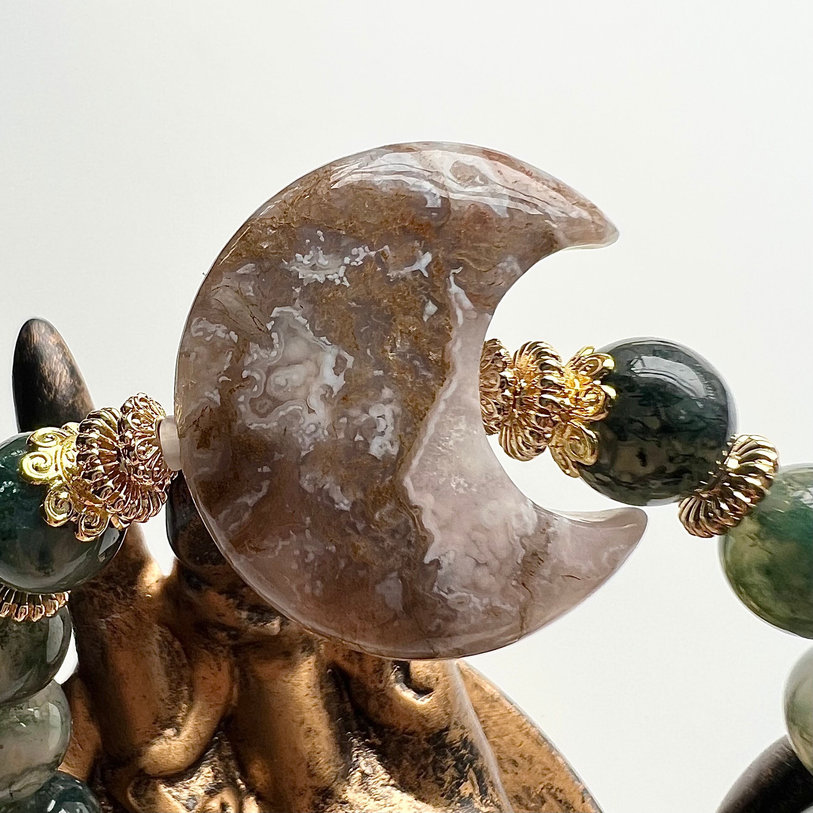 主役は原石の魅力をそのままお楽しみいただけるモスアゲートの三日月です