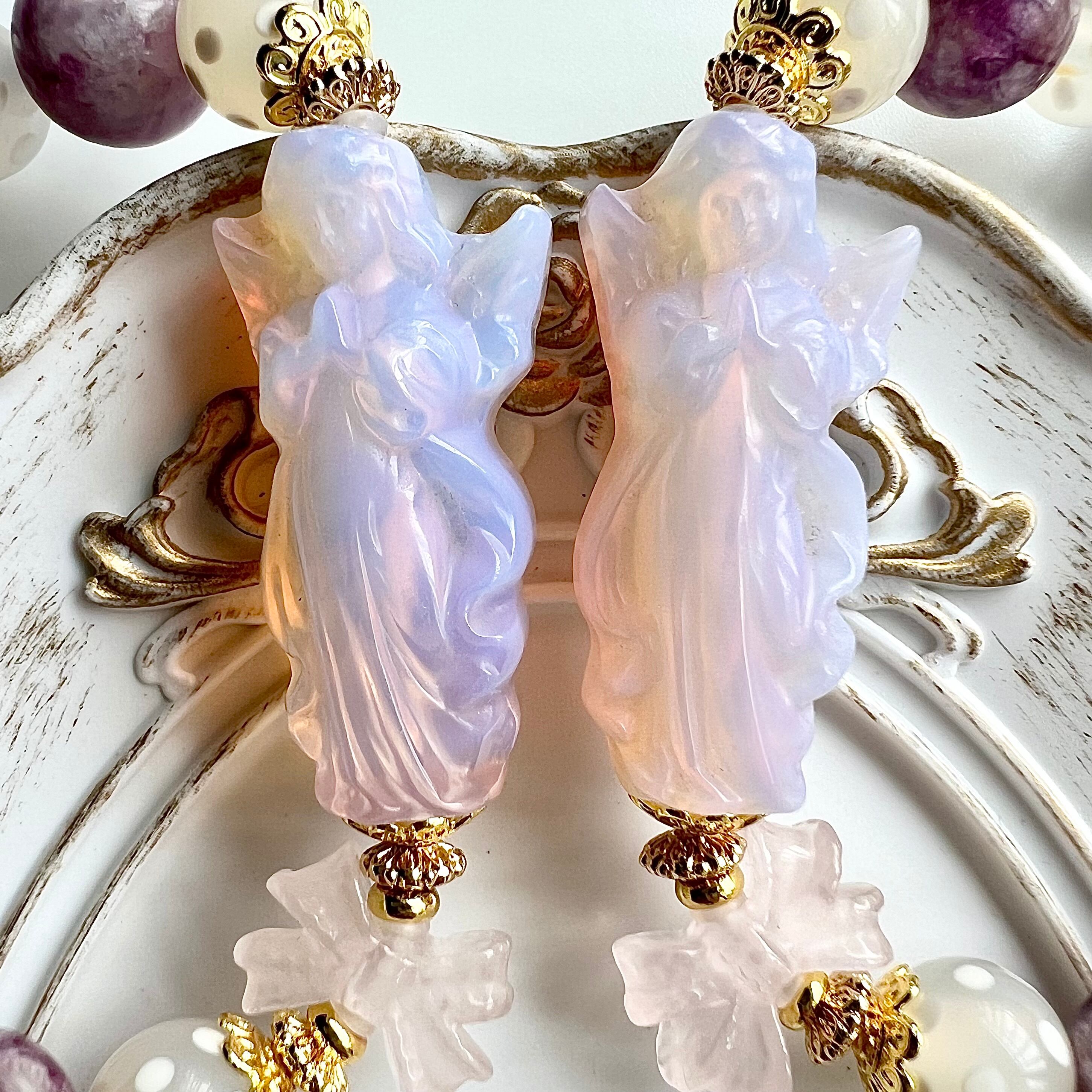 以前ご好評だった満天天珠デザインブレスレットのピンクオパライト天使バージョンを作ってみました