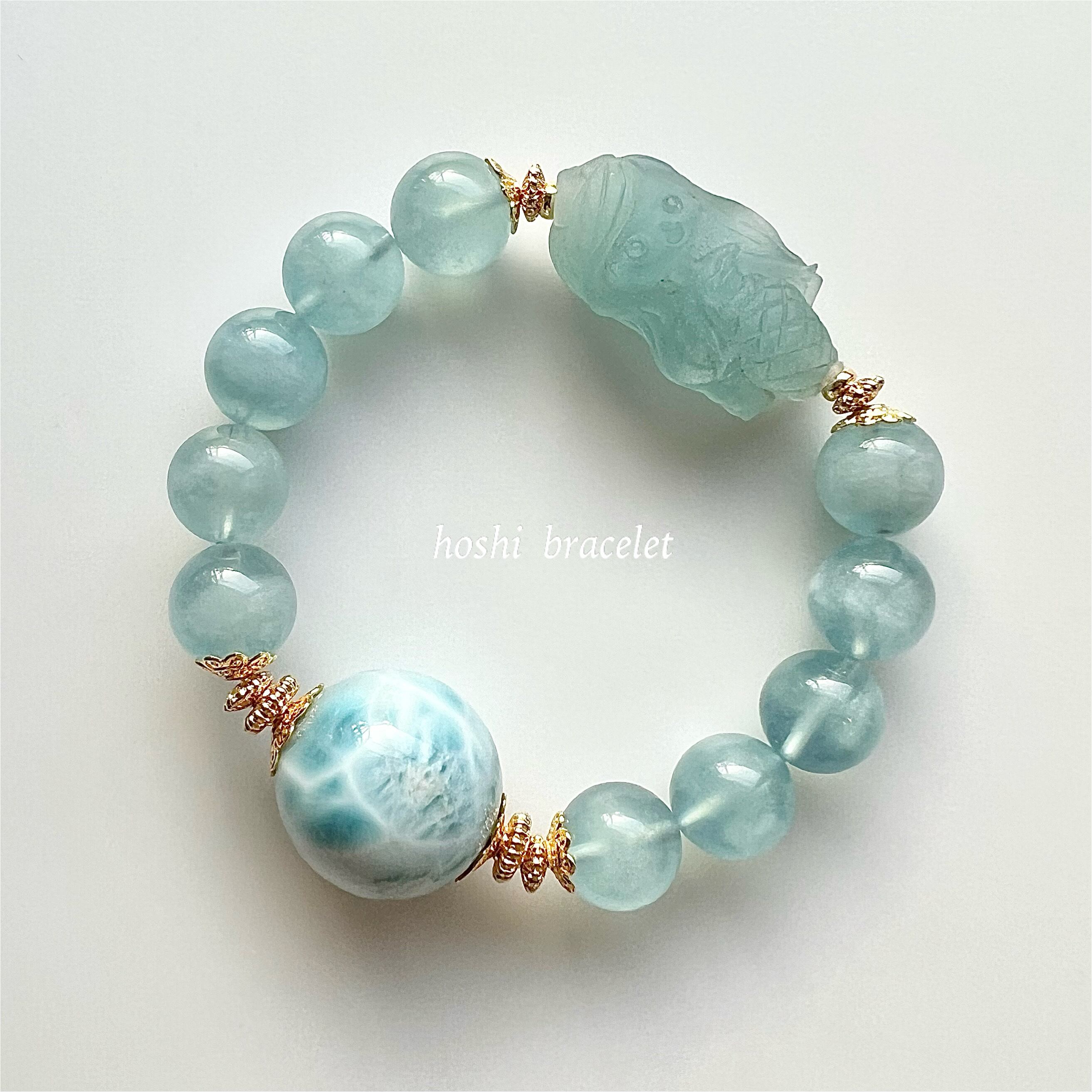 大玉ラリマーとアクアマリンの人魚のデザインブレスレットです