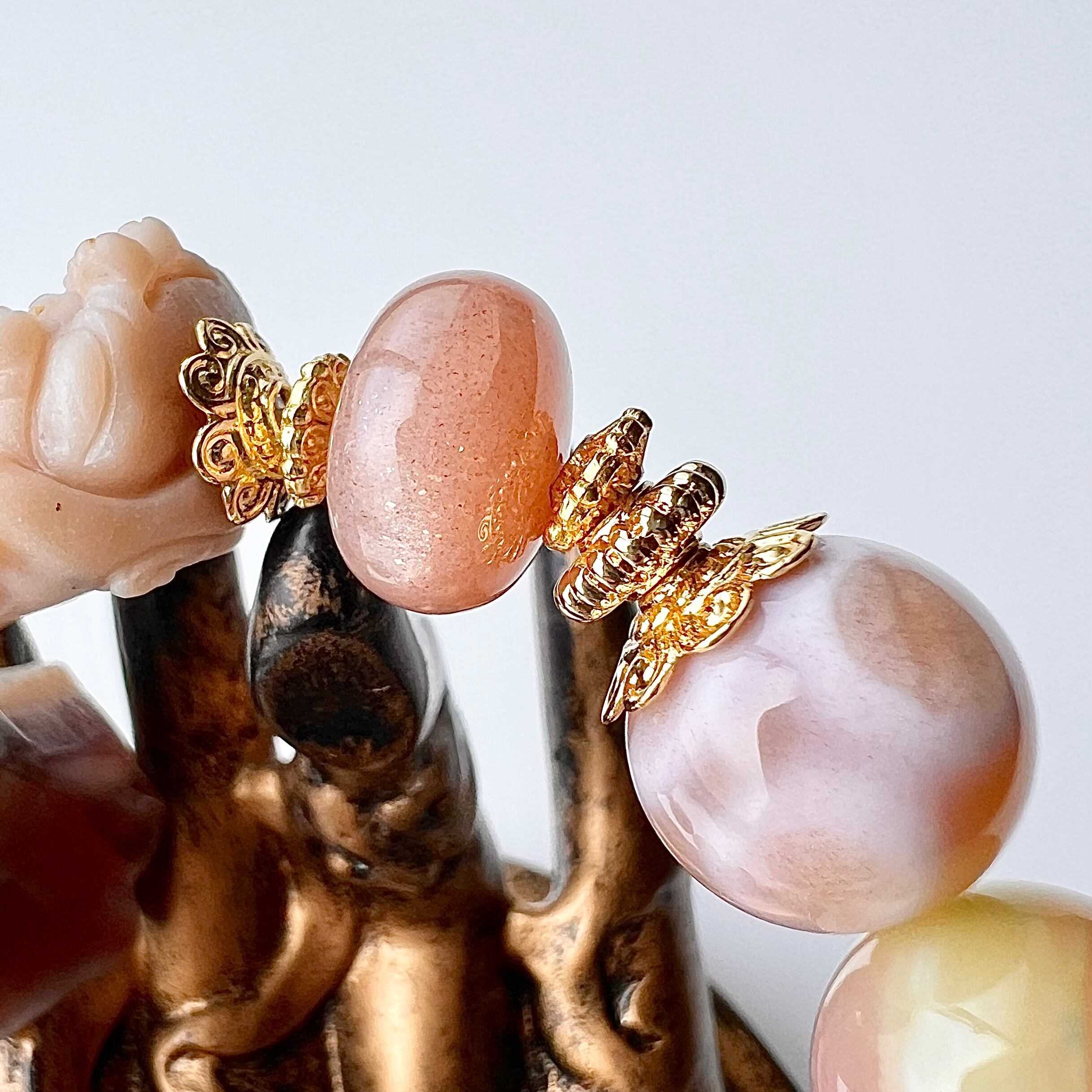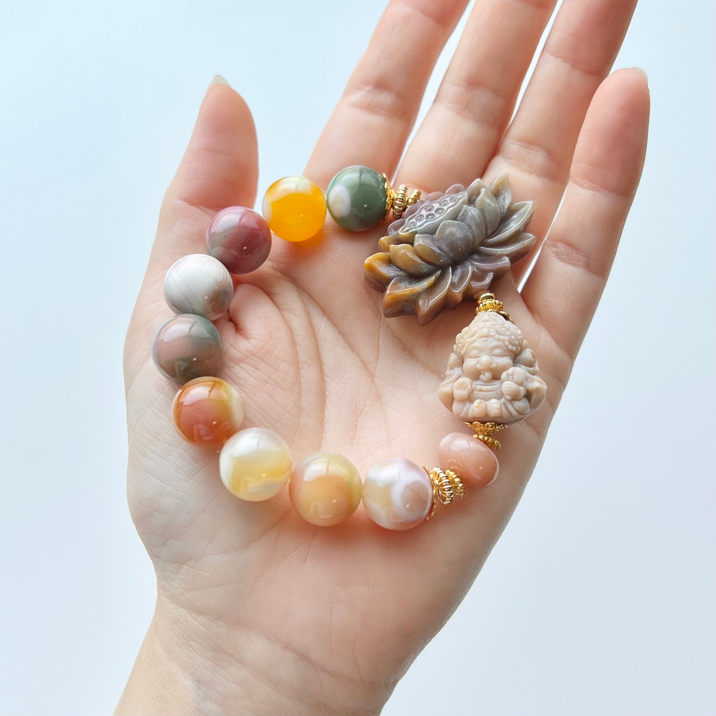 アラシャン瑪瑙 蓮花 ガネーシャ キャンディソルトソースアゲート 天然石 ブレスレット
