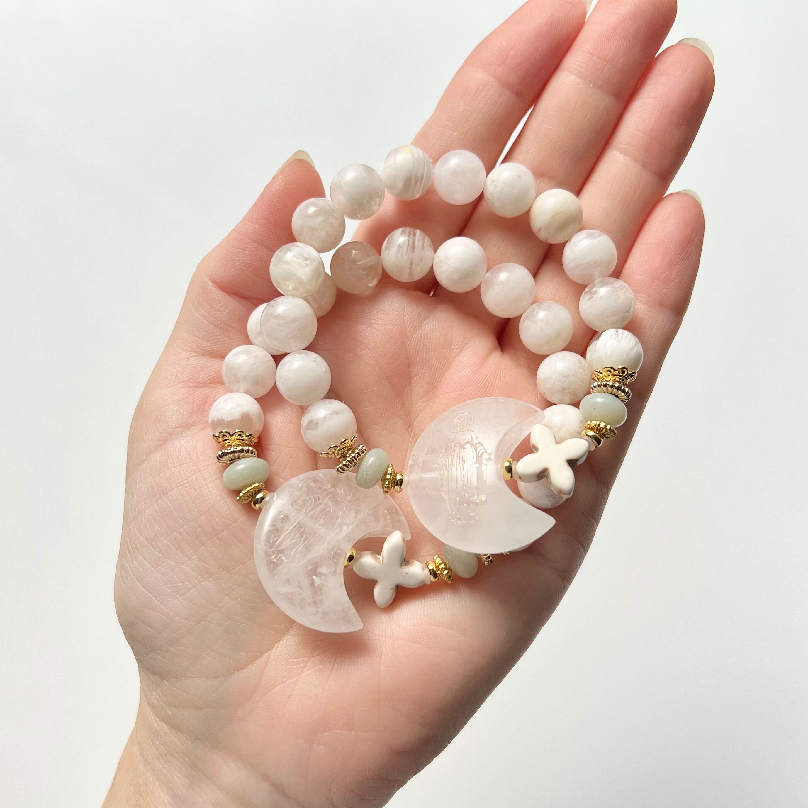 水晶 三日月 マリア セリサイトインクォーツ 天然石 ブレスレット