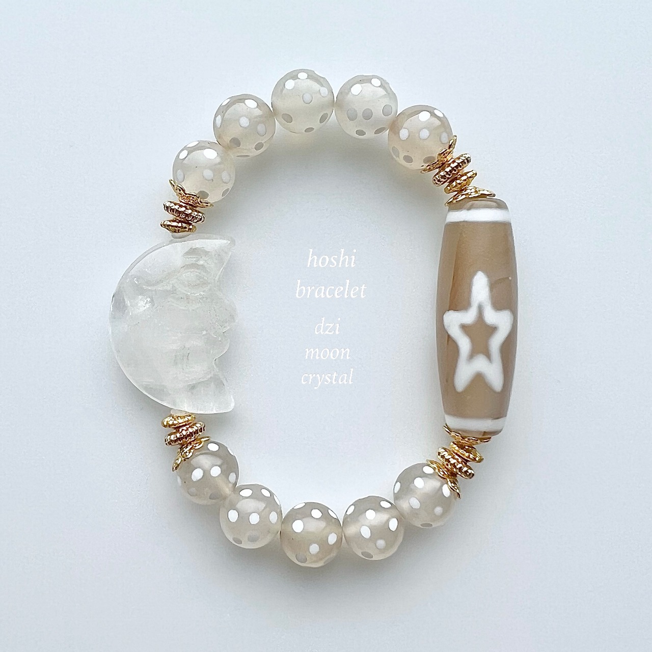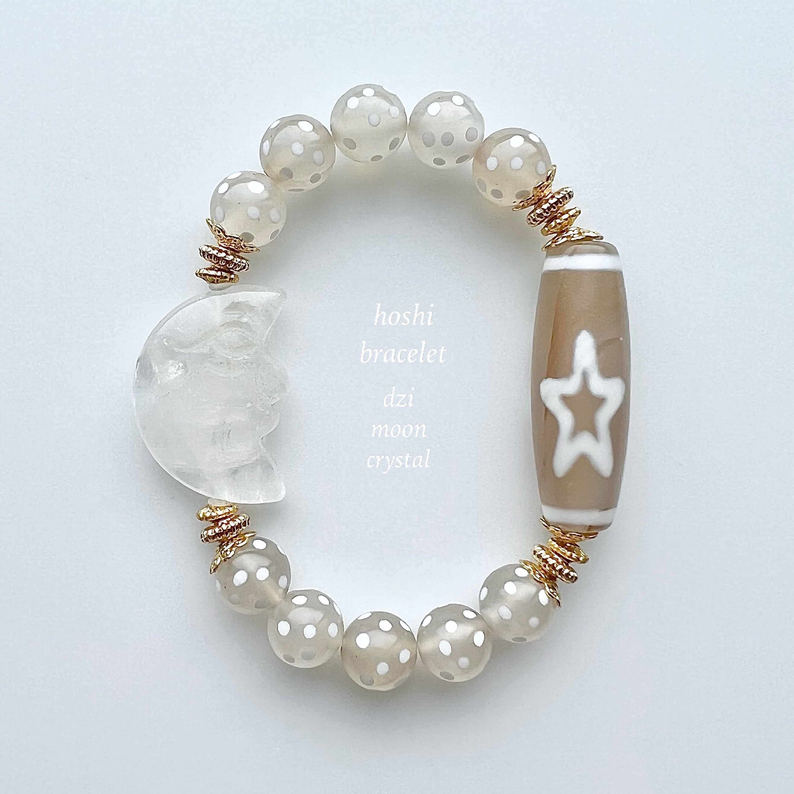 日月星天珠 満天天珠 水晶 三日月 天然石 ブレスレット