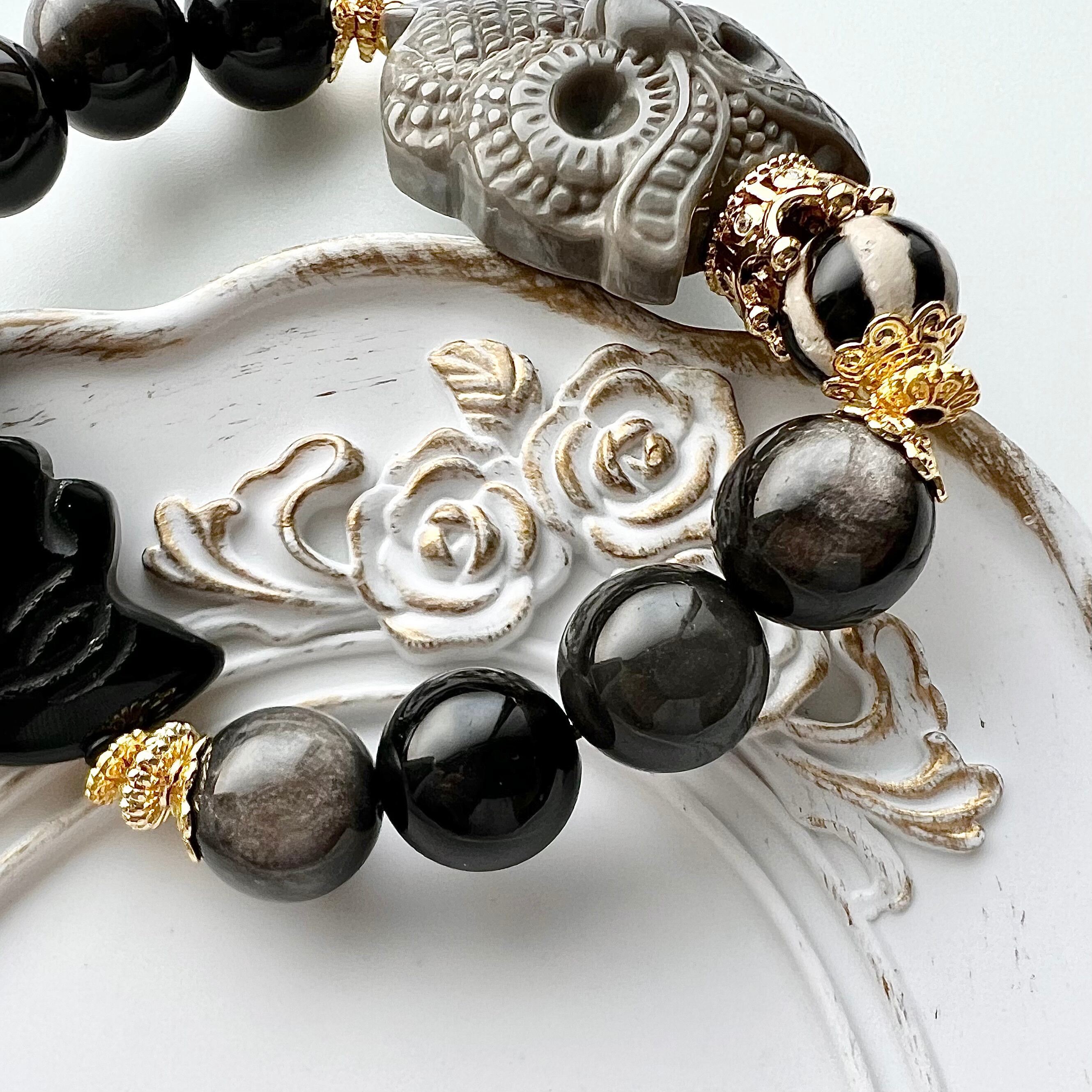 アラシャン瑪瑙 フクロウ オニキス 三日月 天然石 ブレスレット