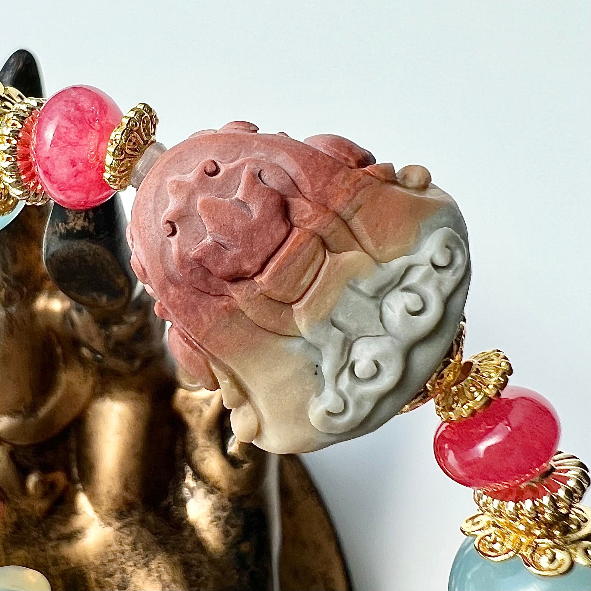 個性的なガネーシャに合わせブレス部分もカラフルなミックスベリルを選びました