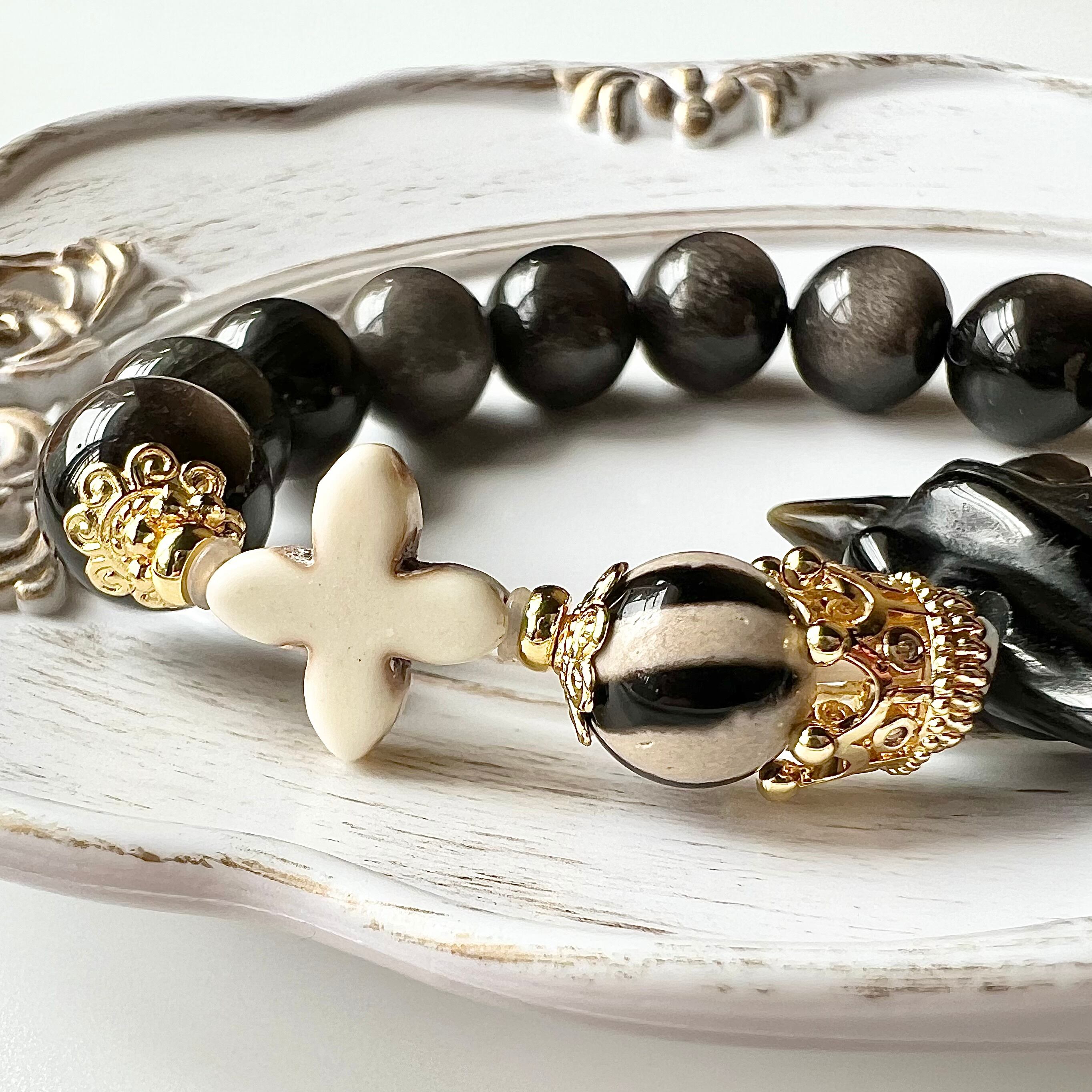 スモーキークォーツ ユニコーン シルバーオブシディアン 天然石 ブレスレット