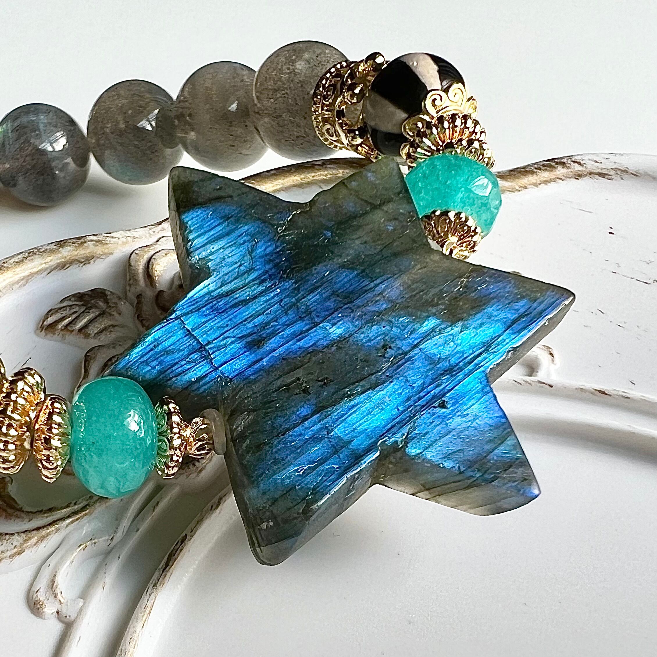 ラブラドライト プロビデンスの目 六芒星 天然石 ブレスレット