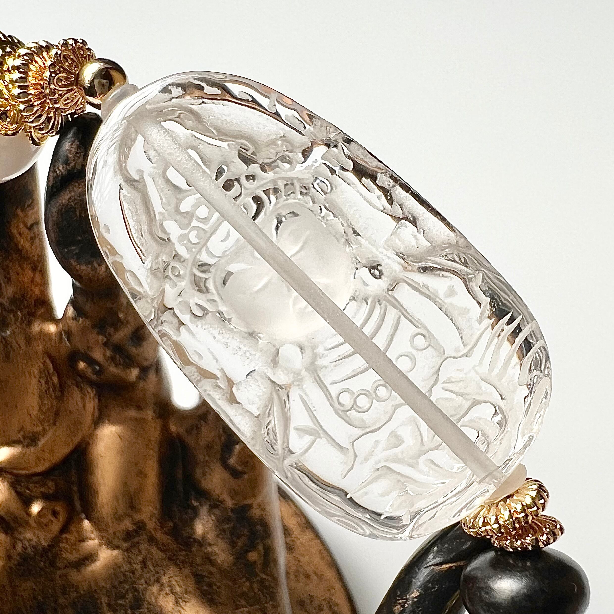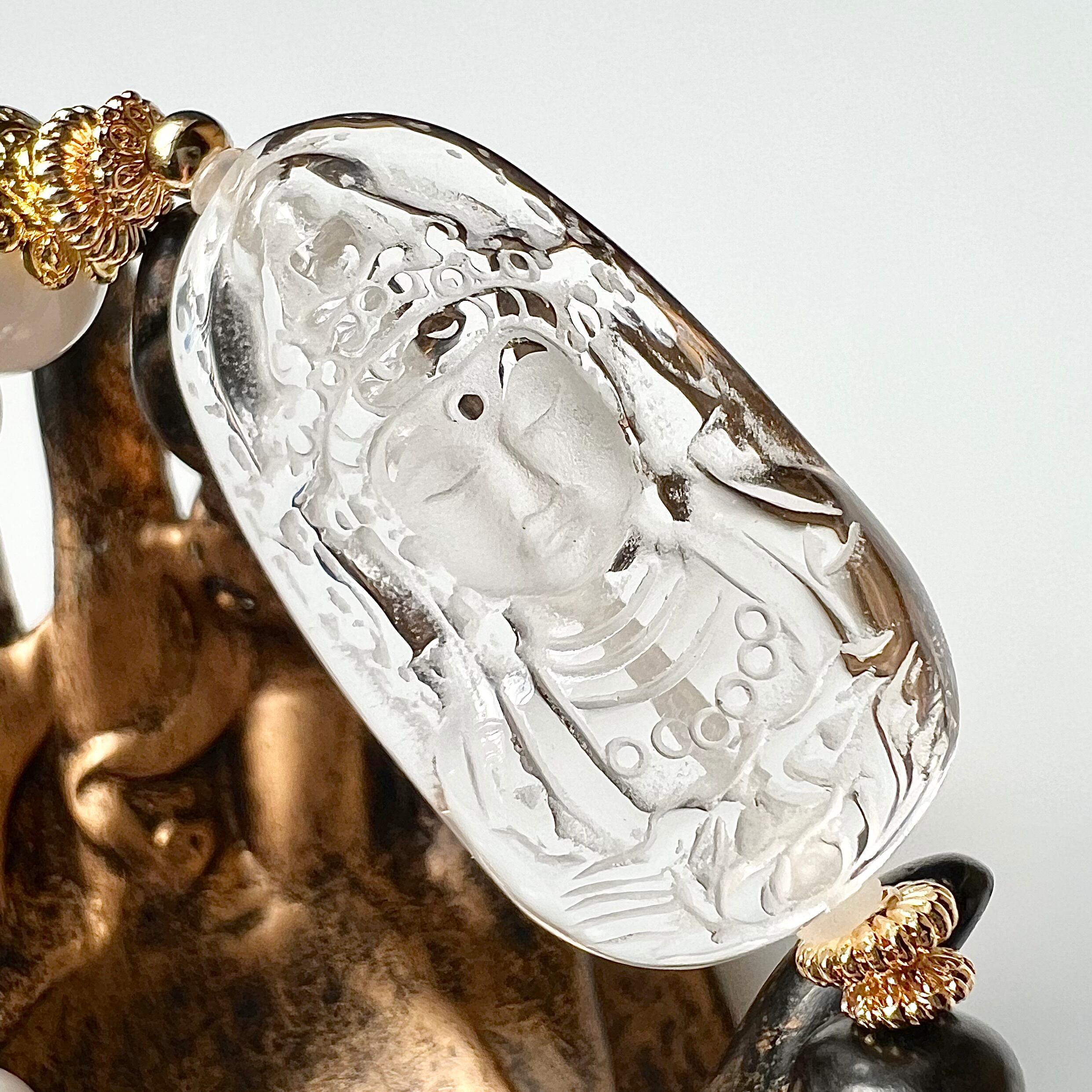 水晶の観音菩薩彫刻とホワイトシェルのデザインブレスレットです