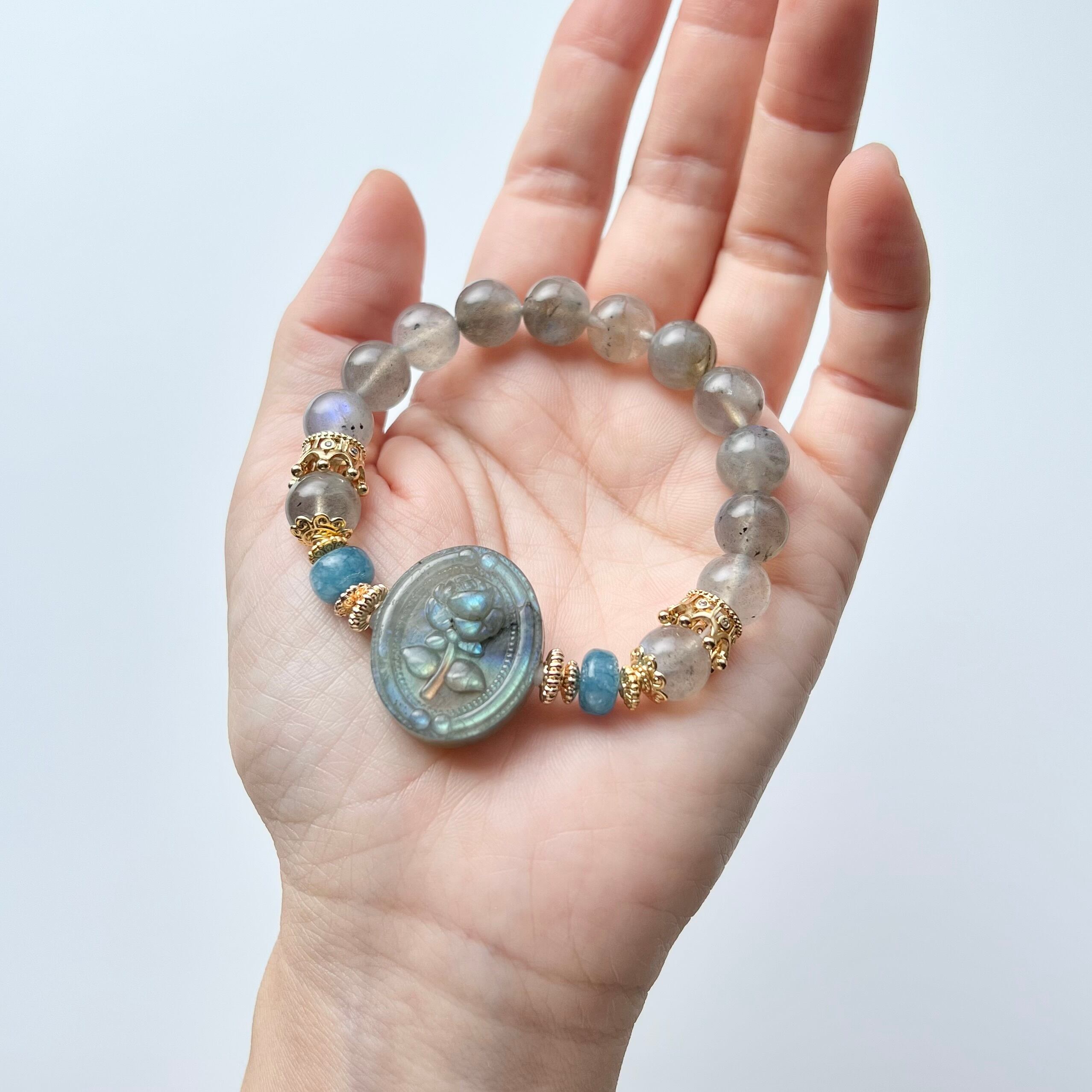 ラブラドライト 薔薇 彫刻 天然石 ブレスレット