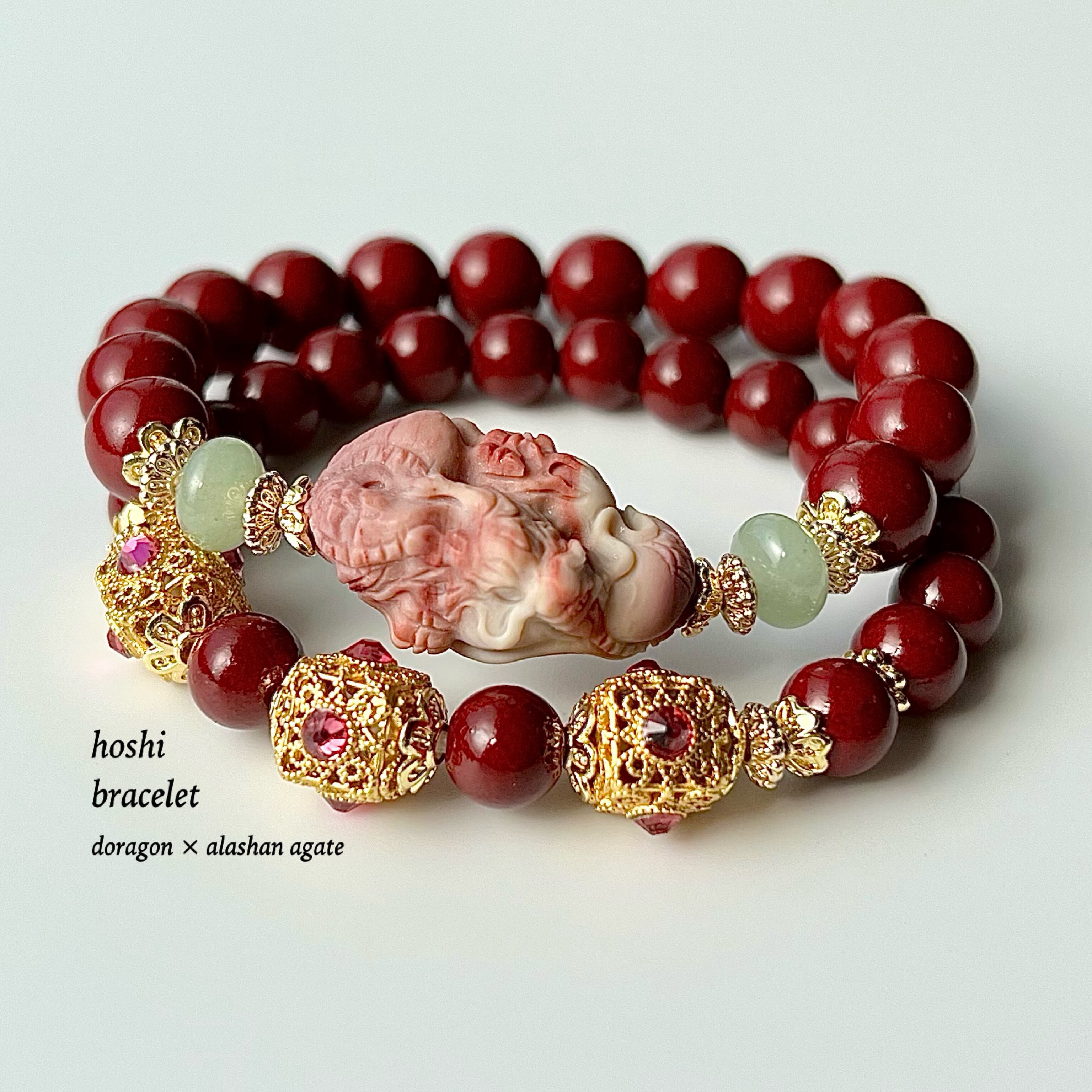 アラシャン瑪瑙 龍 彫刻 シナバー 天然石 ブレスレット