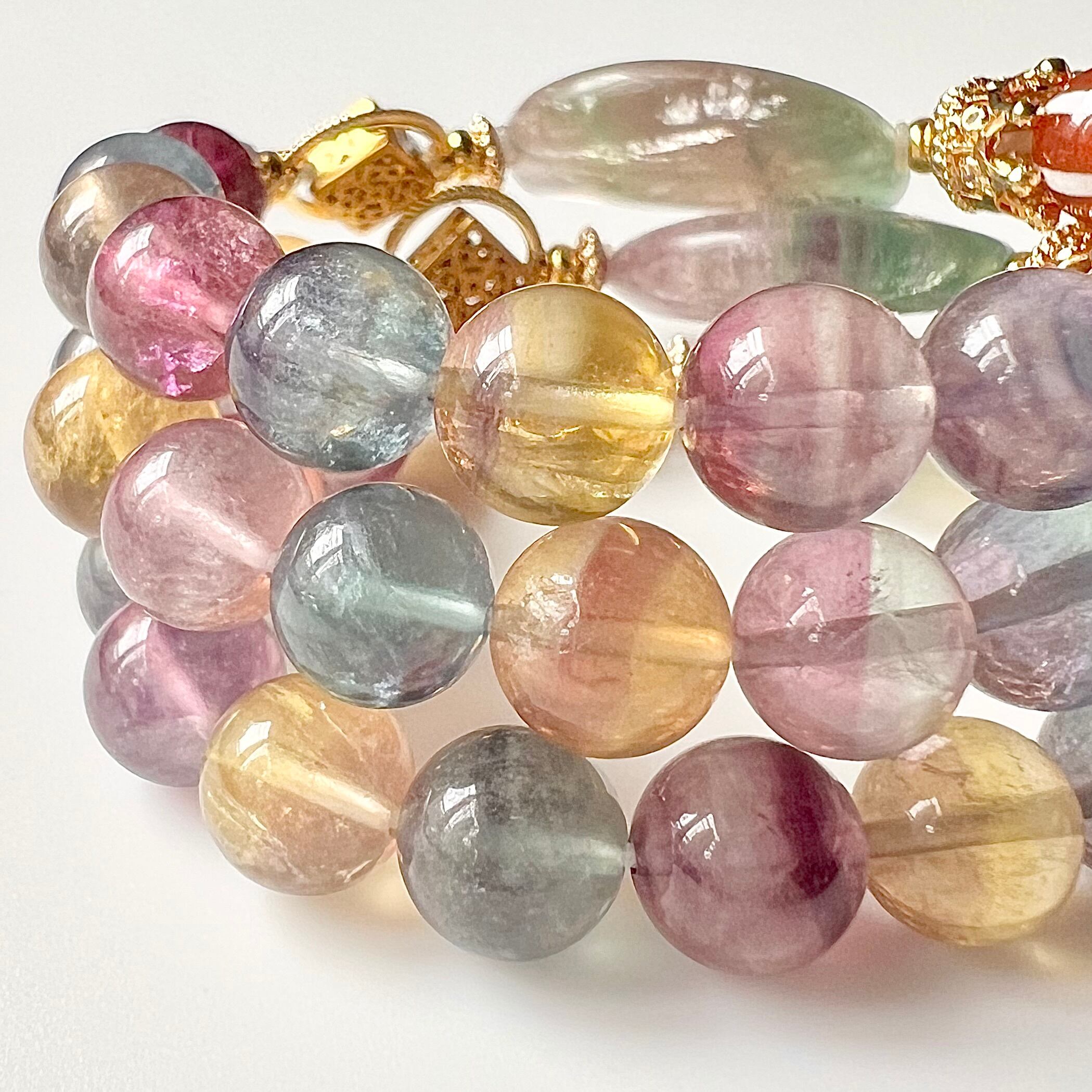 ブレス部分の丸玉は名前通りカラフルで飴玉みたいなキャンディフローライトを使いました