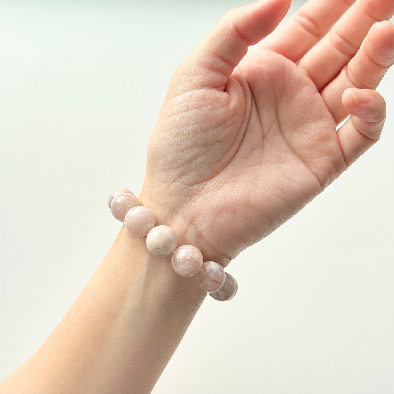 花が無い玉もありますが、レースのような瑪瑙の断面やミルキーピンクが可愛い桜瑪瑙です