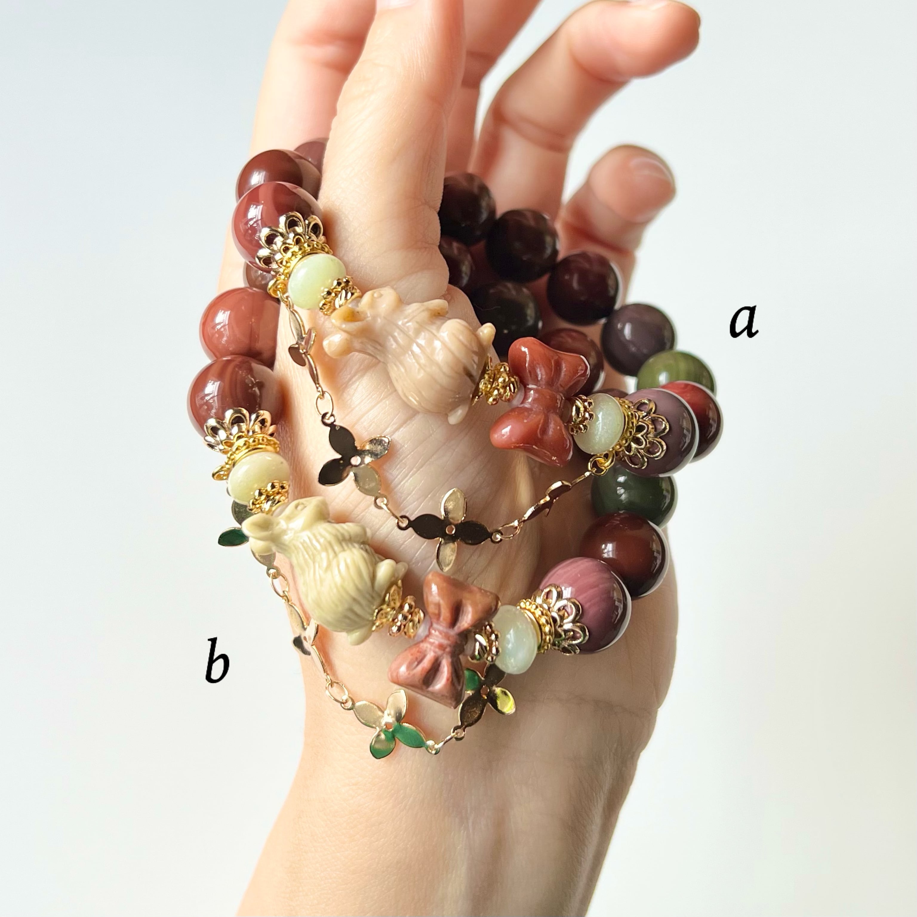 小さなウサギの彫刻をメインに、秋色アラシャン瑪瑙のデザインブレスレットが出来ました