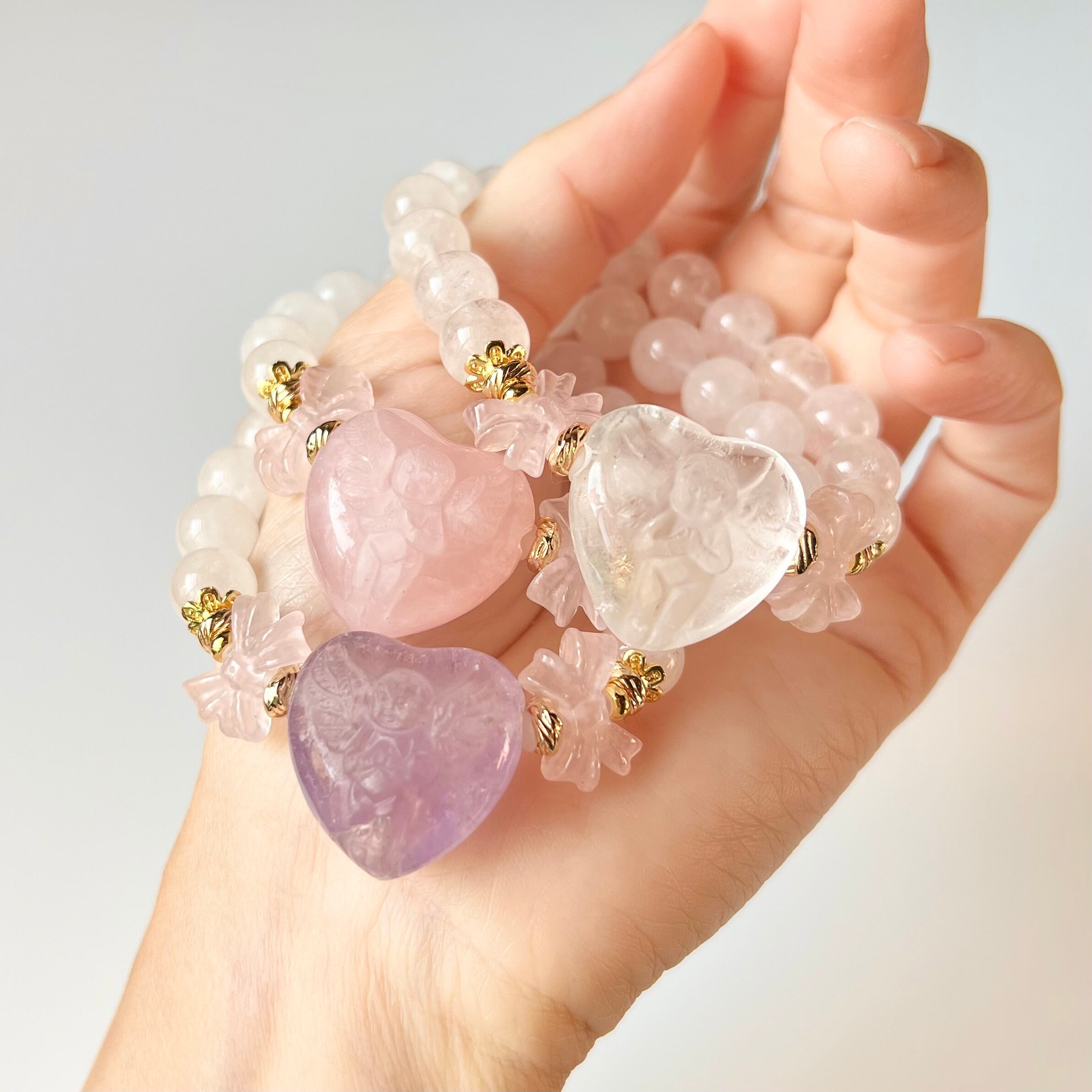 天使 ハート 水晶 ローズクォーツ アメジスト 天然石 ブレスレット