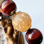 ブレス部分は大玉のレッドタイガーアイと、羊のツノに彫られた龍と鳳凰の吉祥玉を交互に並べました