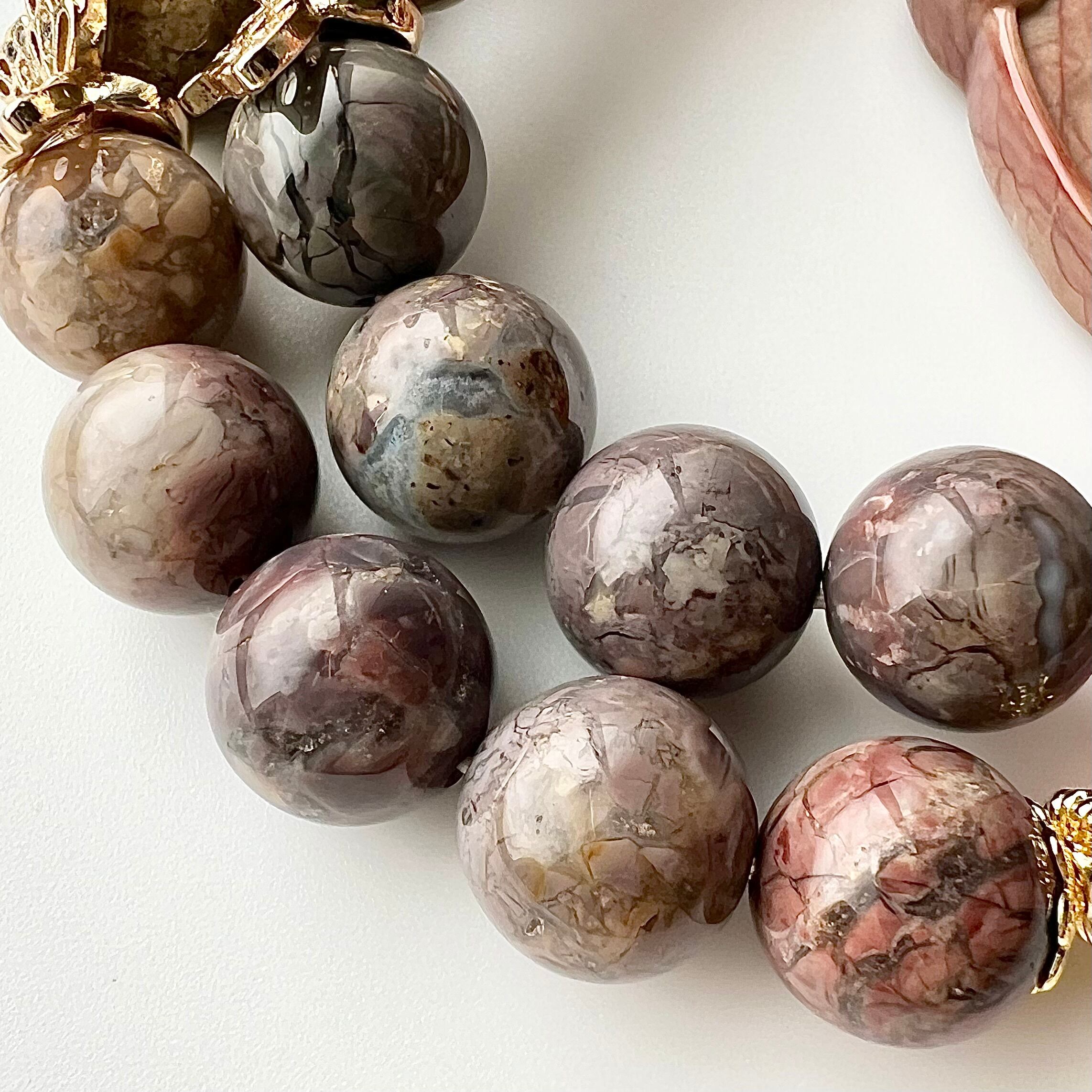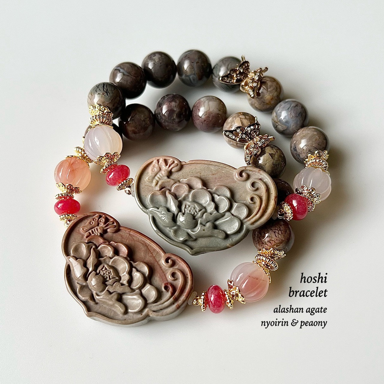 アラシャン瑪瑙 如意と牡丹 天然石 ブレスレット