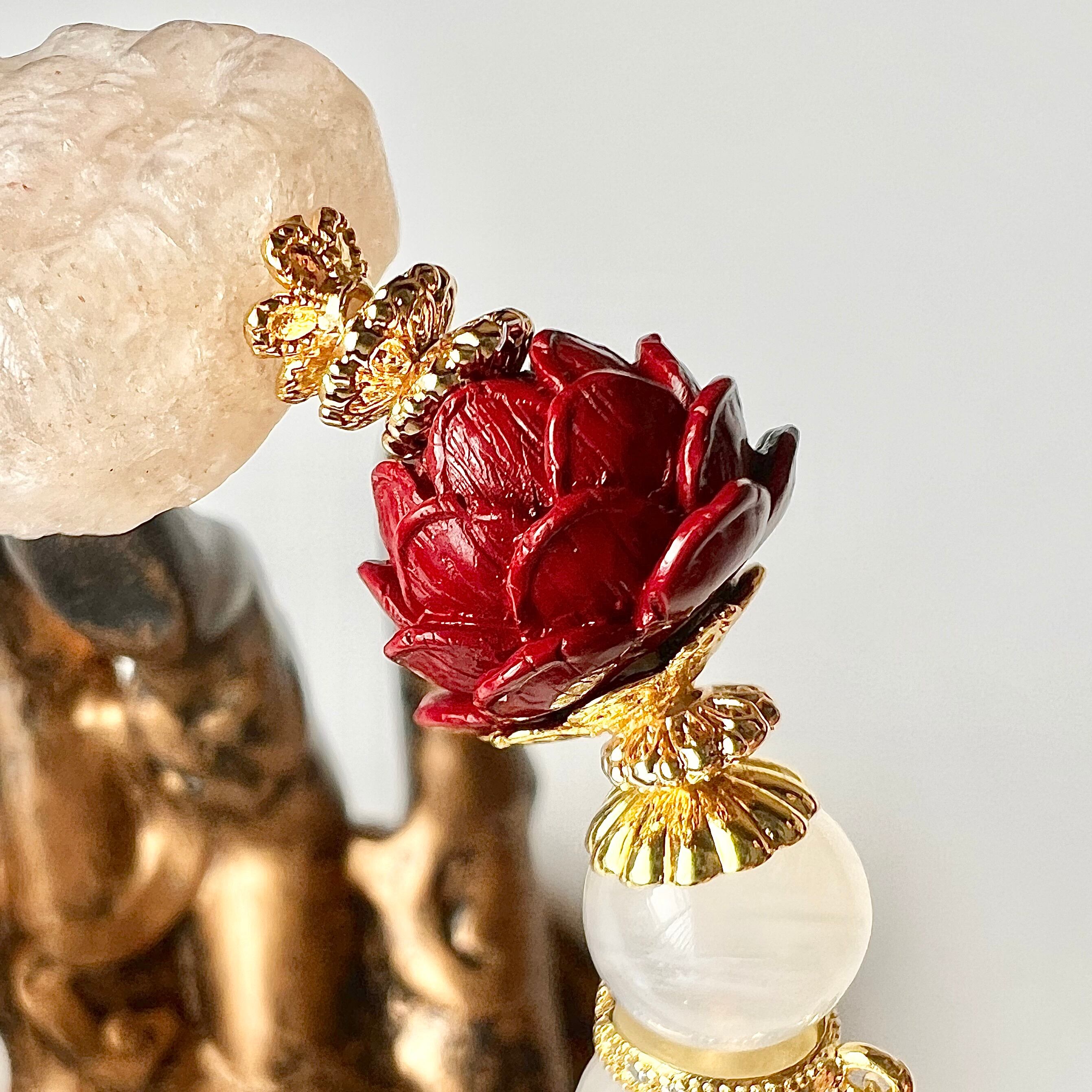 そんなガネーシャの下には真っ赤な練りシナバーの蓮花彫刻をあしらいました