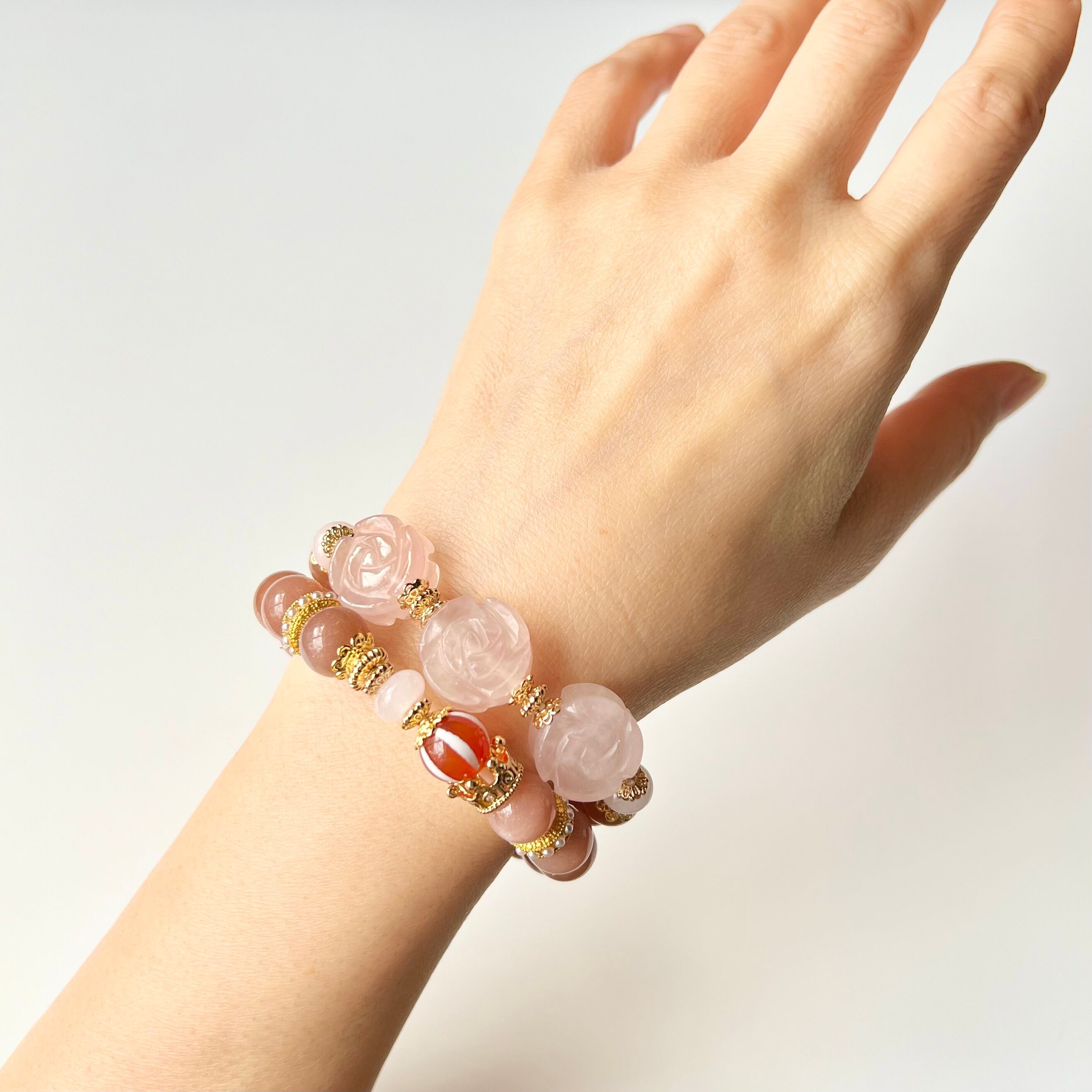 オレンジムーンストーン ローズクォーツ 薔薇 天然石 ブレスレット