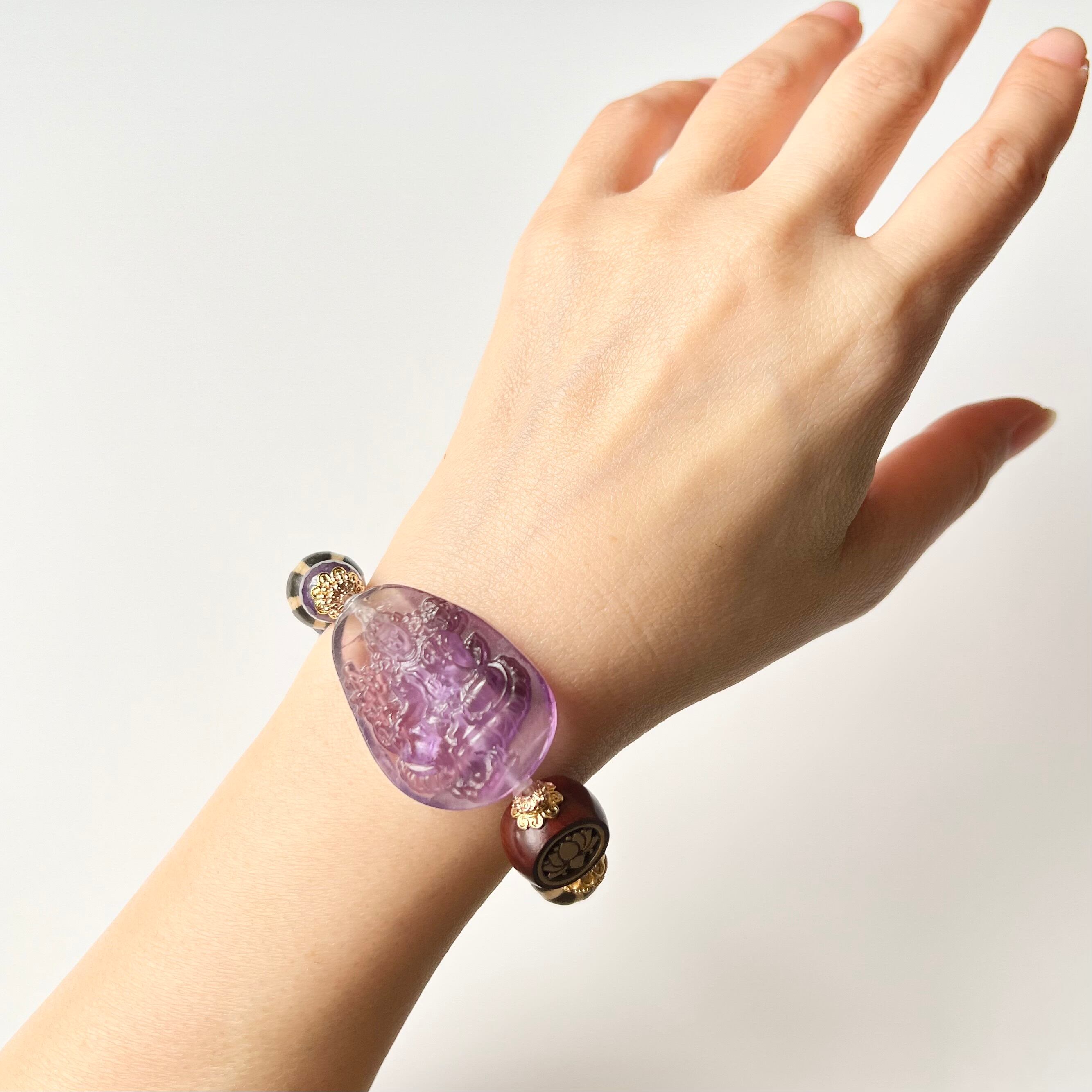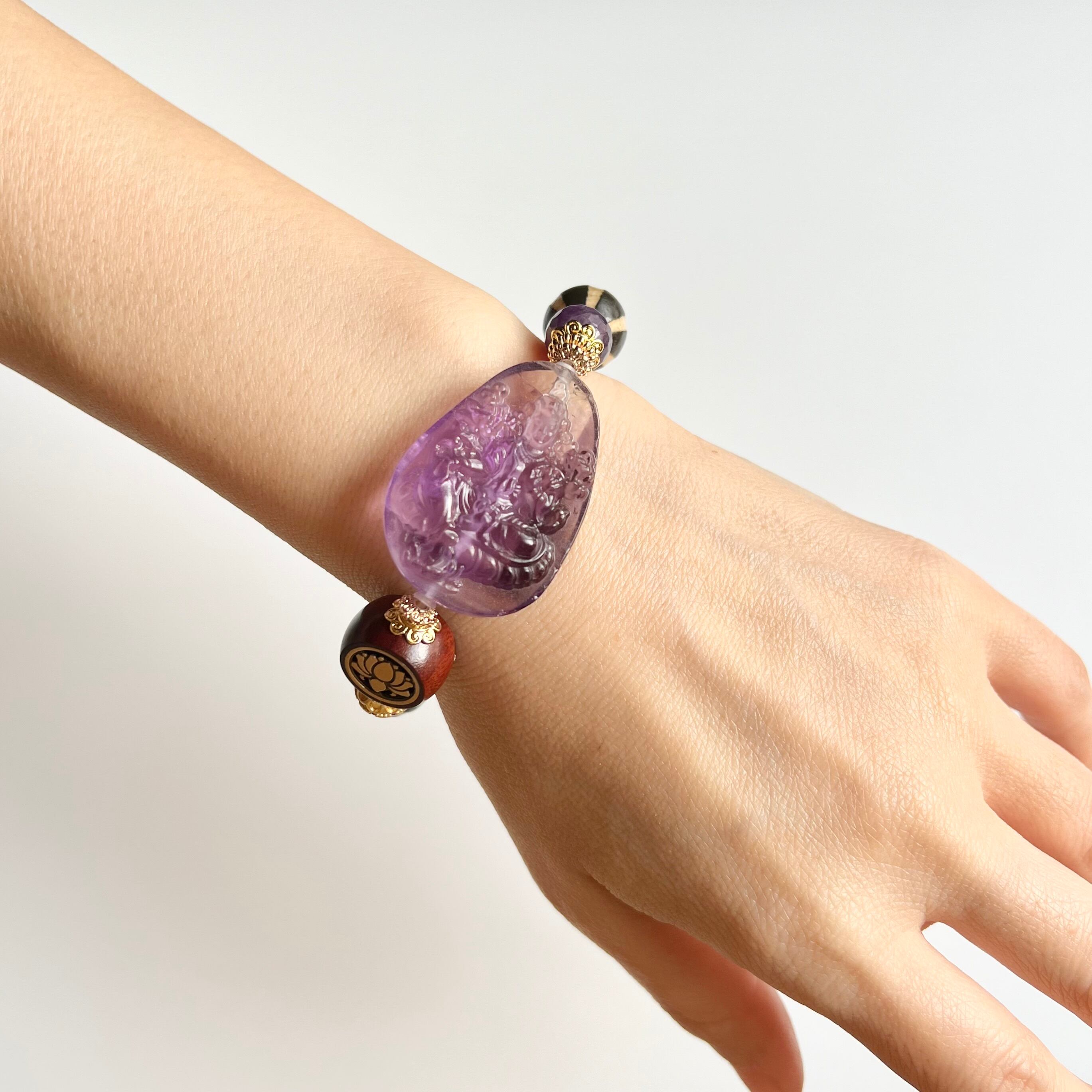 アメジストファントムに彫られた観音菩薩のデザインブレスレットです