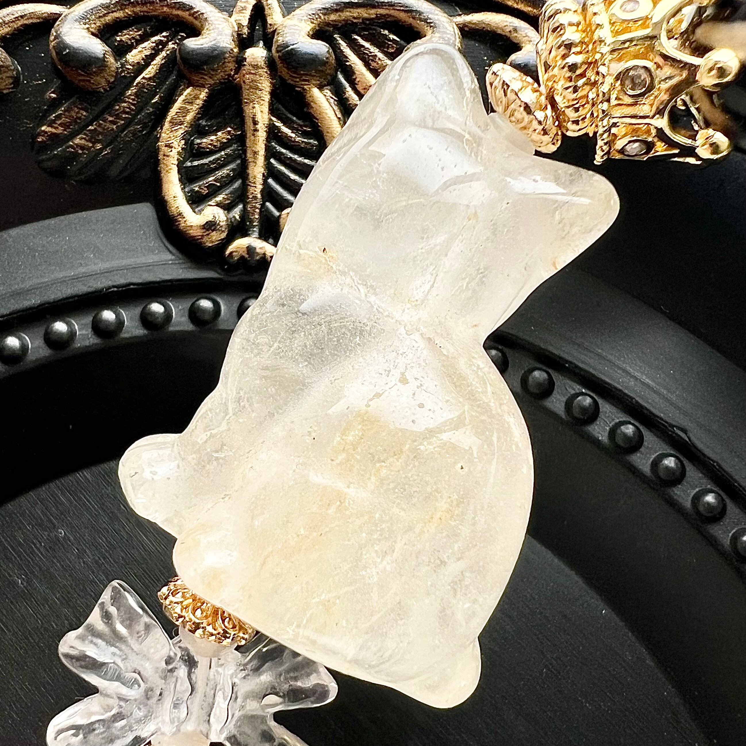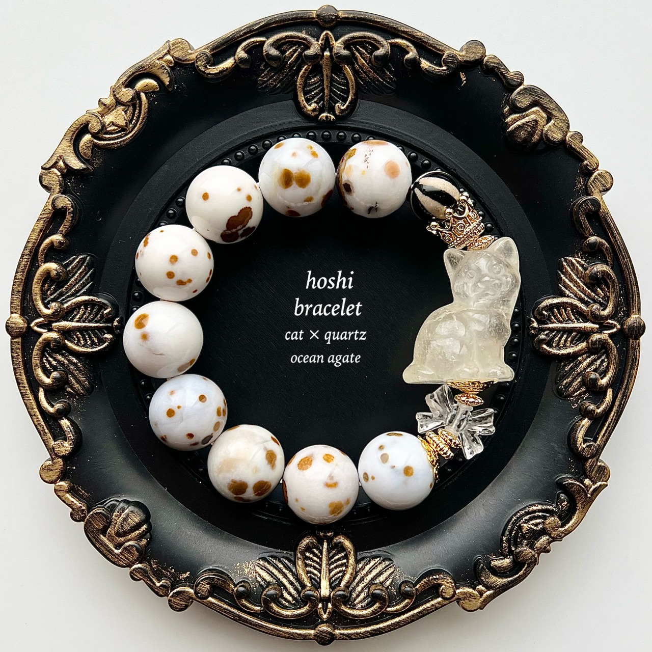 水晶の猫とオーシャンアゲートのデザインブレスレットです