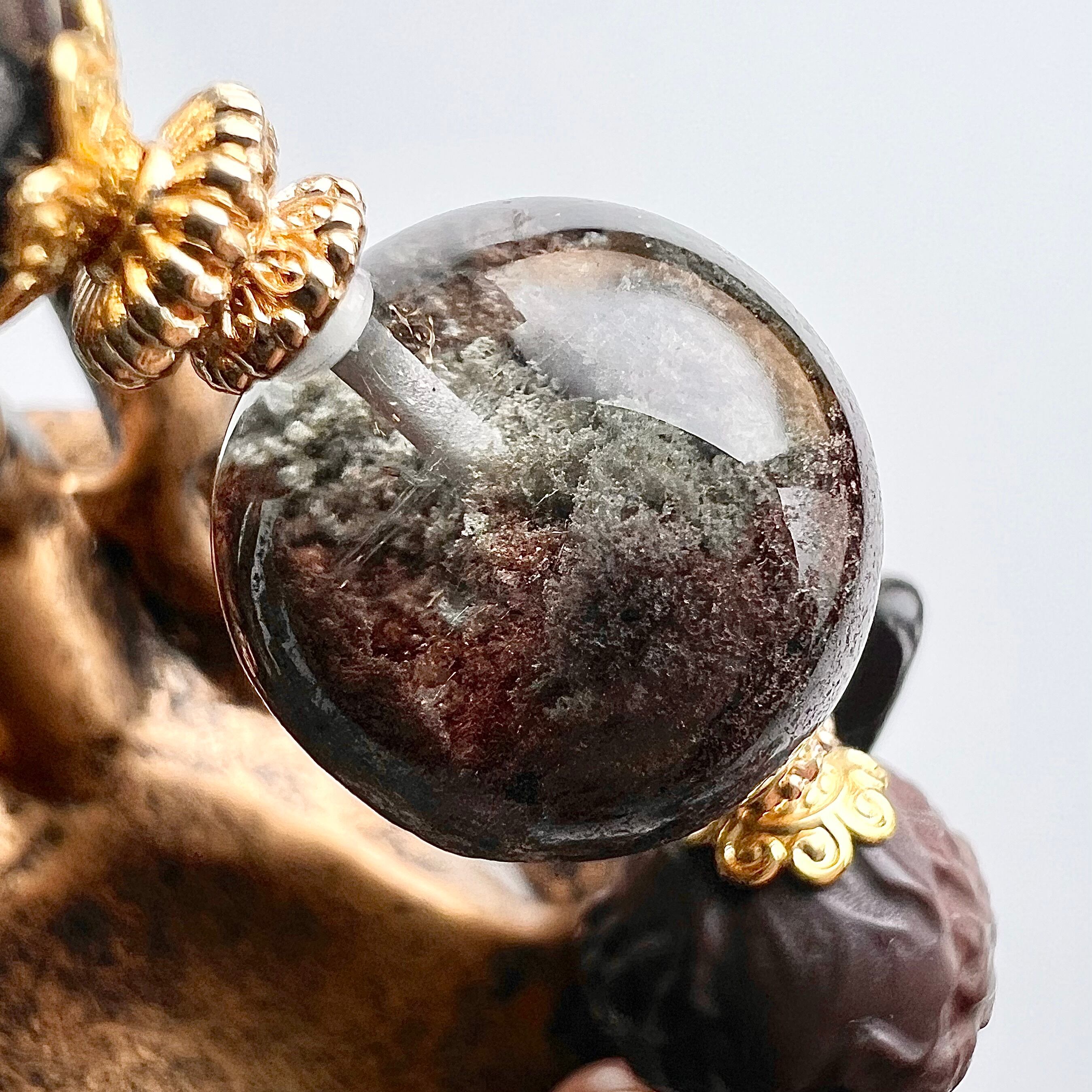 他にも20mm玉には鳳凰が彫刻されたアラシャン瑪瑙を、19mm玉には蓮花彫刻のアラシャン瑪瑙をそれぞれあしらいました