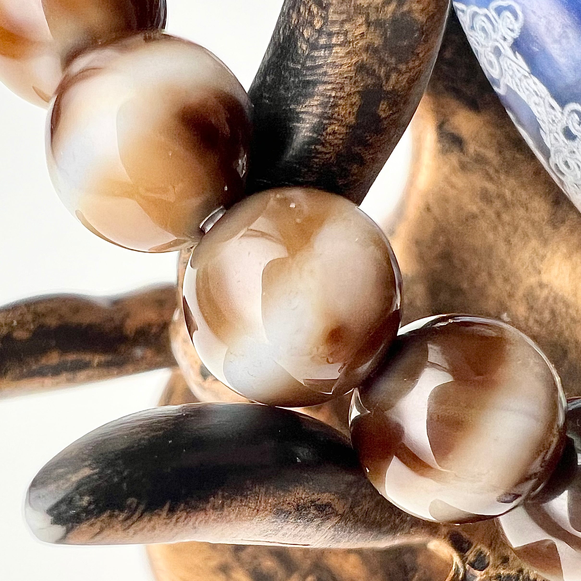 たる型青瑪瑙双龍紋 亀甲天珠 虎牙天珠 薬師珠 天然石 ブレスレット