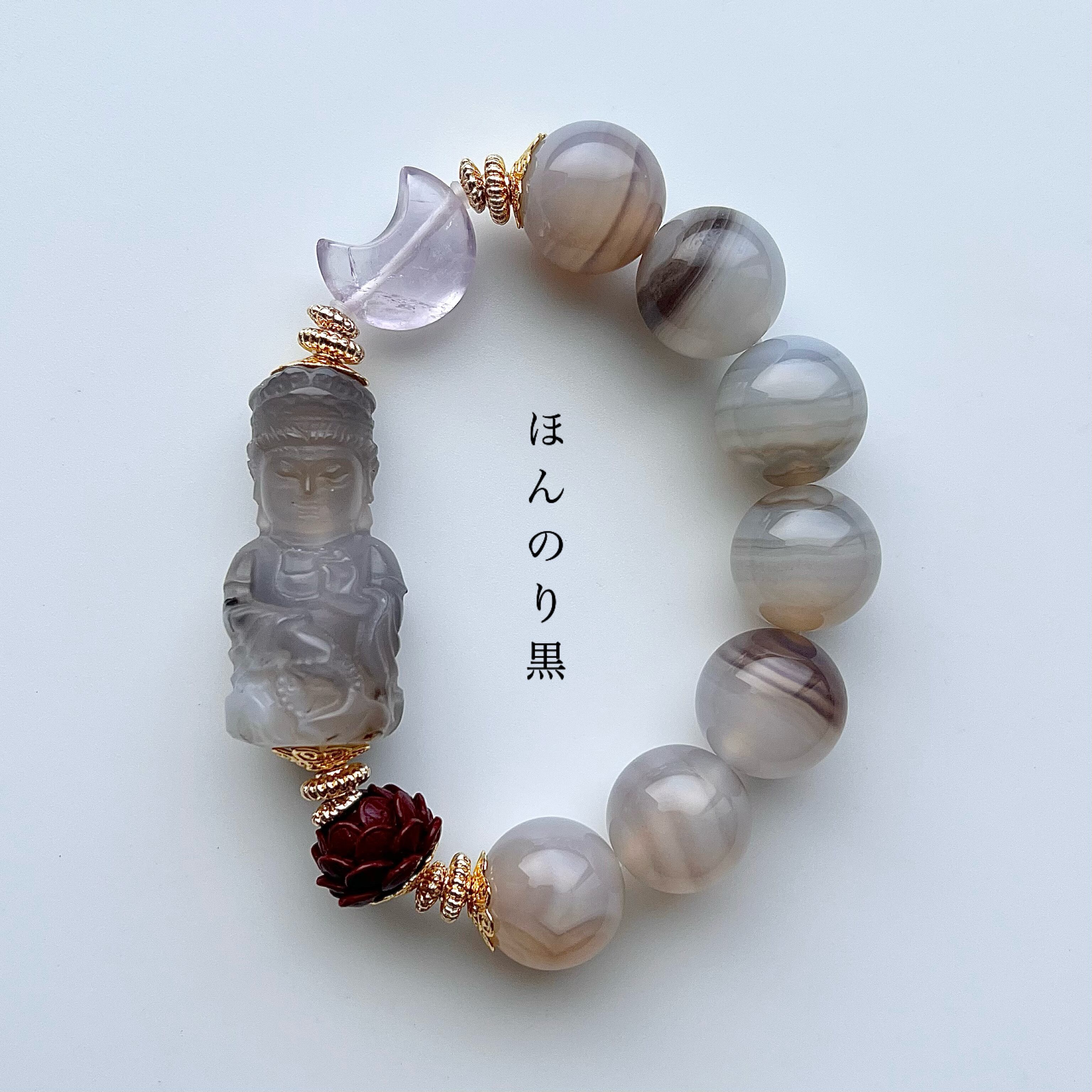 瑪瑙 観音菩薩 ラベンダーアメジスト 三日月 天然石 ブレスレット