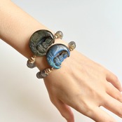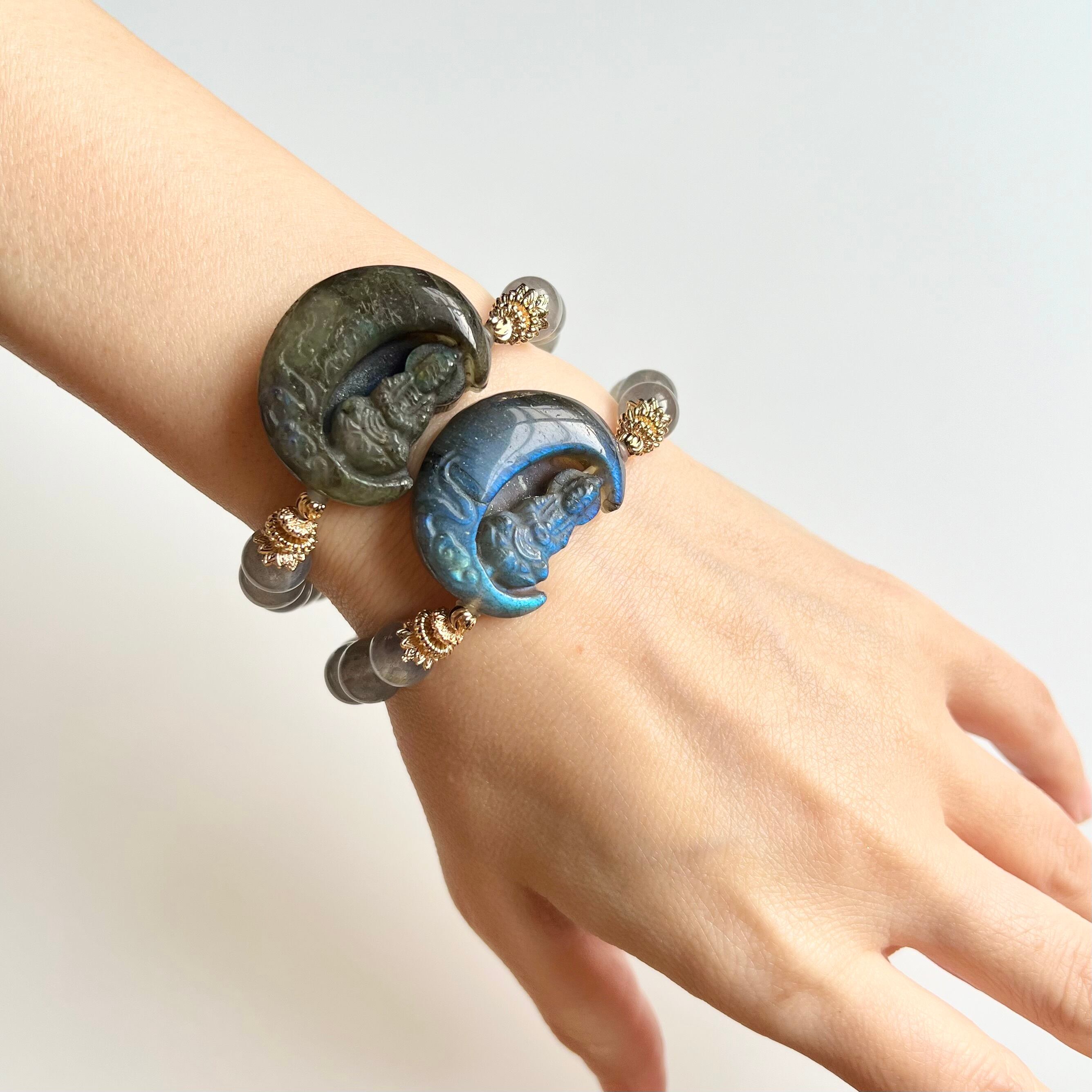 三日月×観音菩薩と蓮花彫刻のラブラドライトデザインブレスレットです