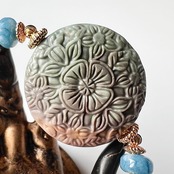 ブレス部分の石も花彫りと同じアラシャン瑪瑙にしようか迷いましたが、これから夏に向けアクアマリンを選びました